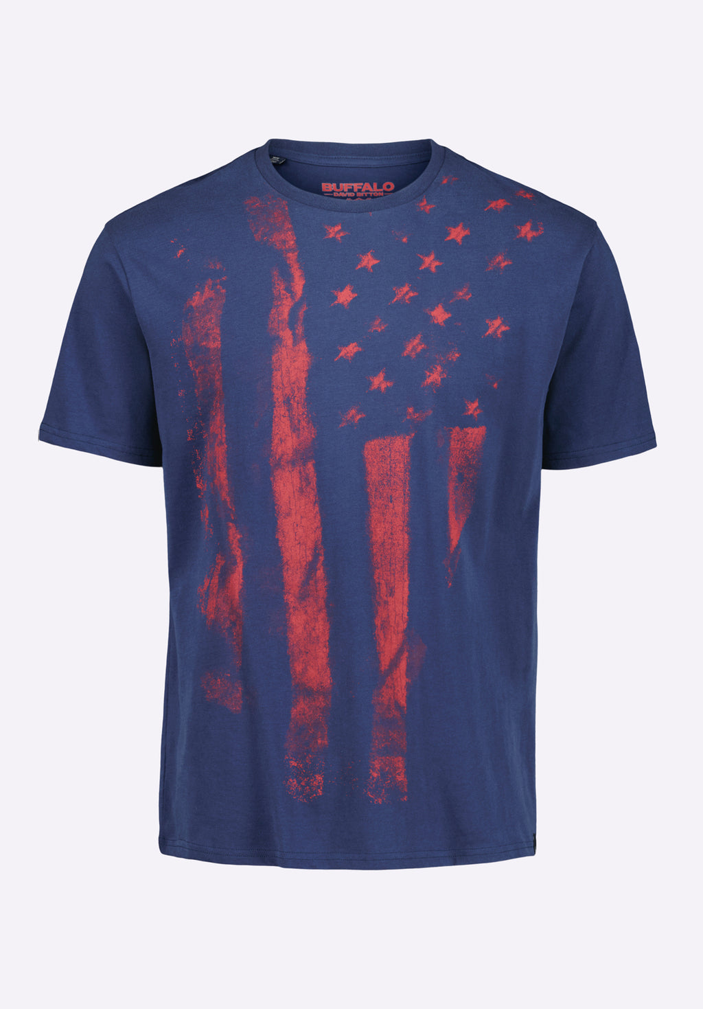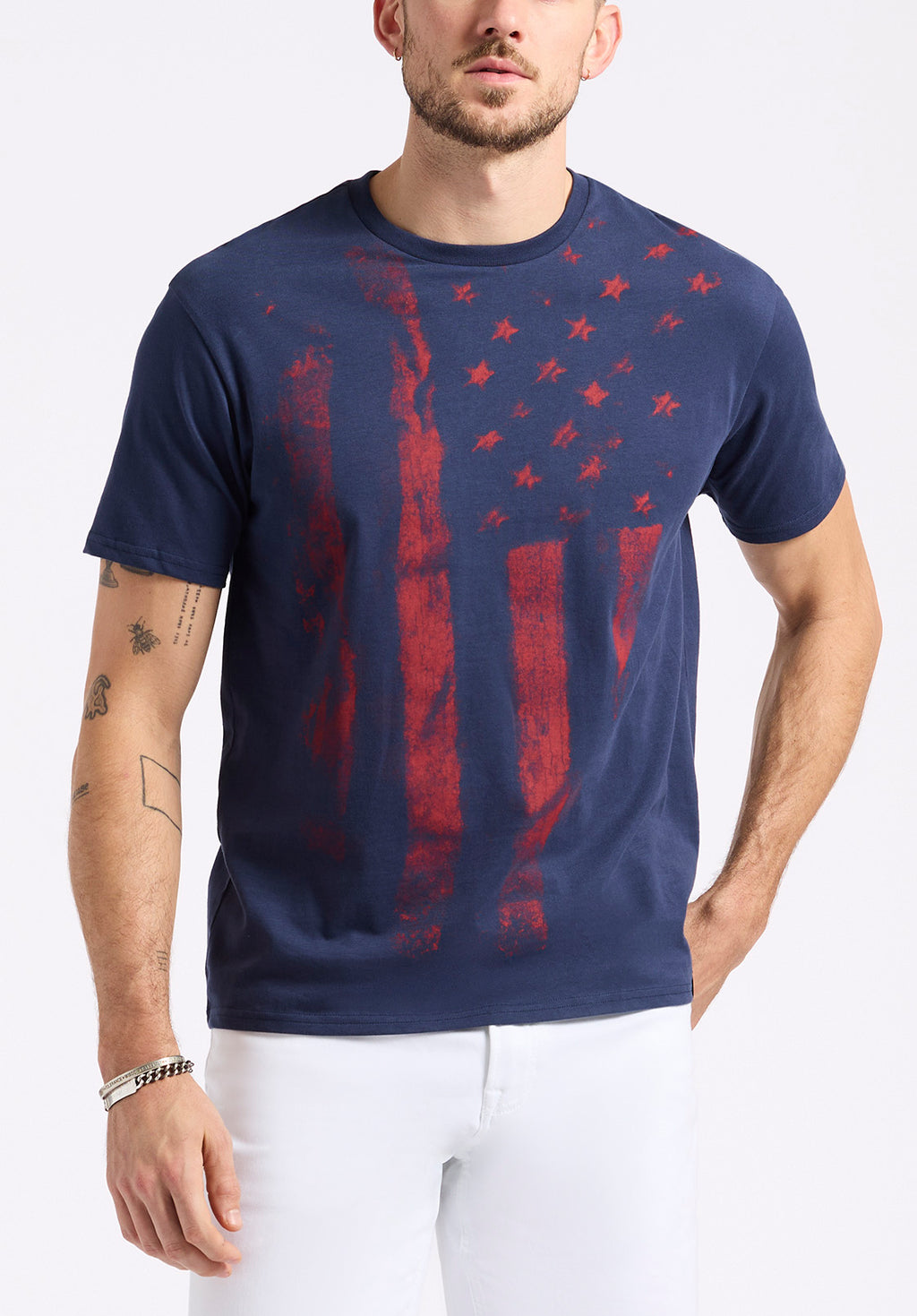 Celebrate bold style and patriotic flair with this American flag graphic t-shirt Talla. Crafted from a soft, breathable cotton blend, this tee offers ultimate comfort for all-day wear. The classic crew neckline and short sleeves provide a versatile fit, while the faded flag print adds a touch of rugged appeal. Perfect for casual outings, barbecues, or festive celebrations, this t-shirt pairs effortlessly with jeans or shorts for an effortlessly cool look. Show off your patriotic pride in timeless style.