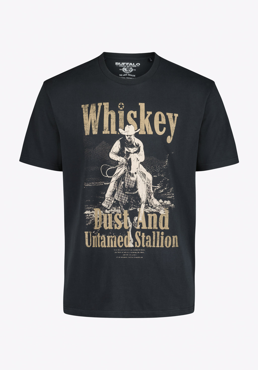 Tafo Men’s Graphic T-Shirt with Whiskey Cowboy Print, Black - BM24819