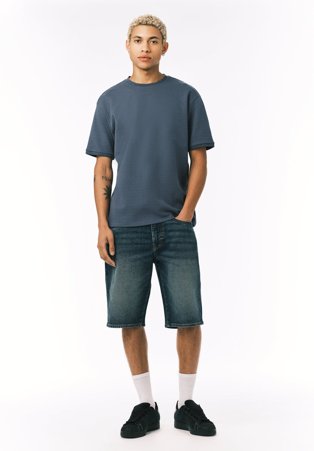 Kellen Men’s Textured Knit T-Shirt, Vintage Indigo - BM24758