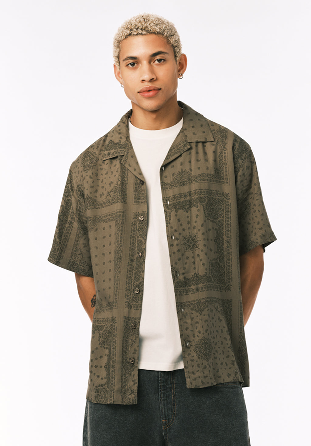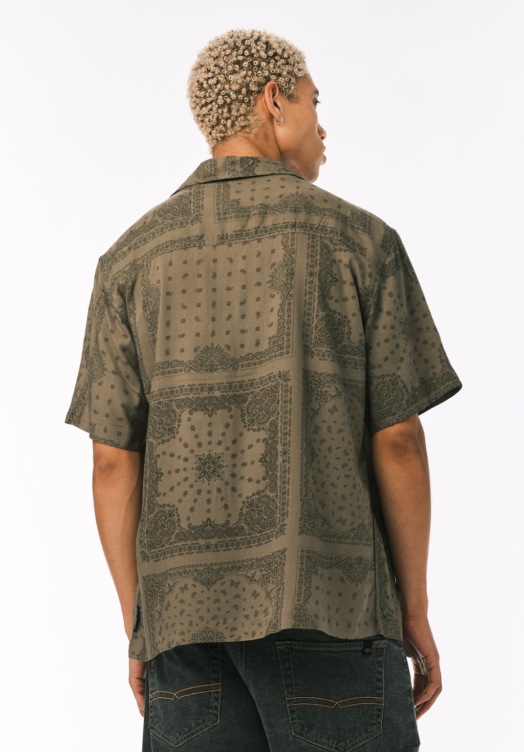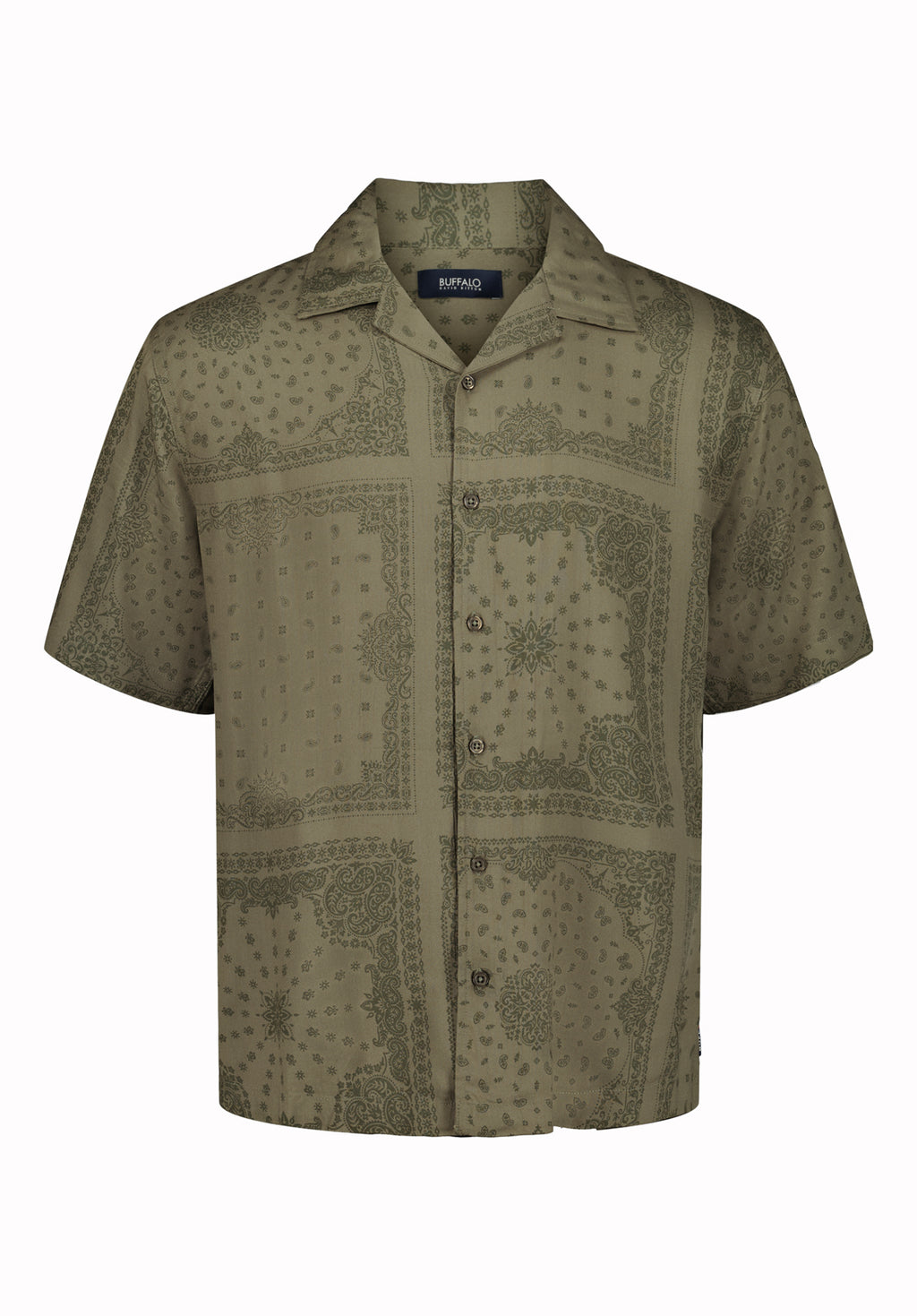 Sandro Men’s Printed Short Sleeve Camp Shirt, Army Green - BM24781