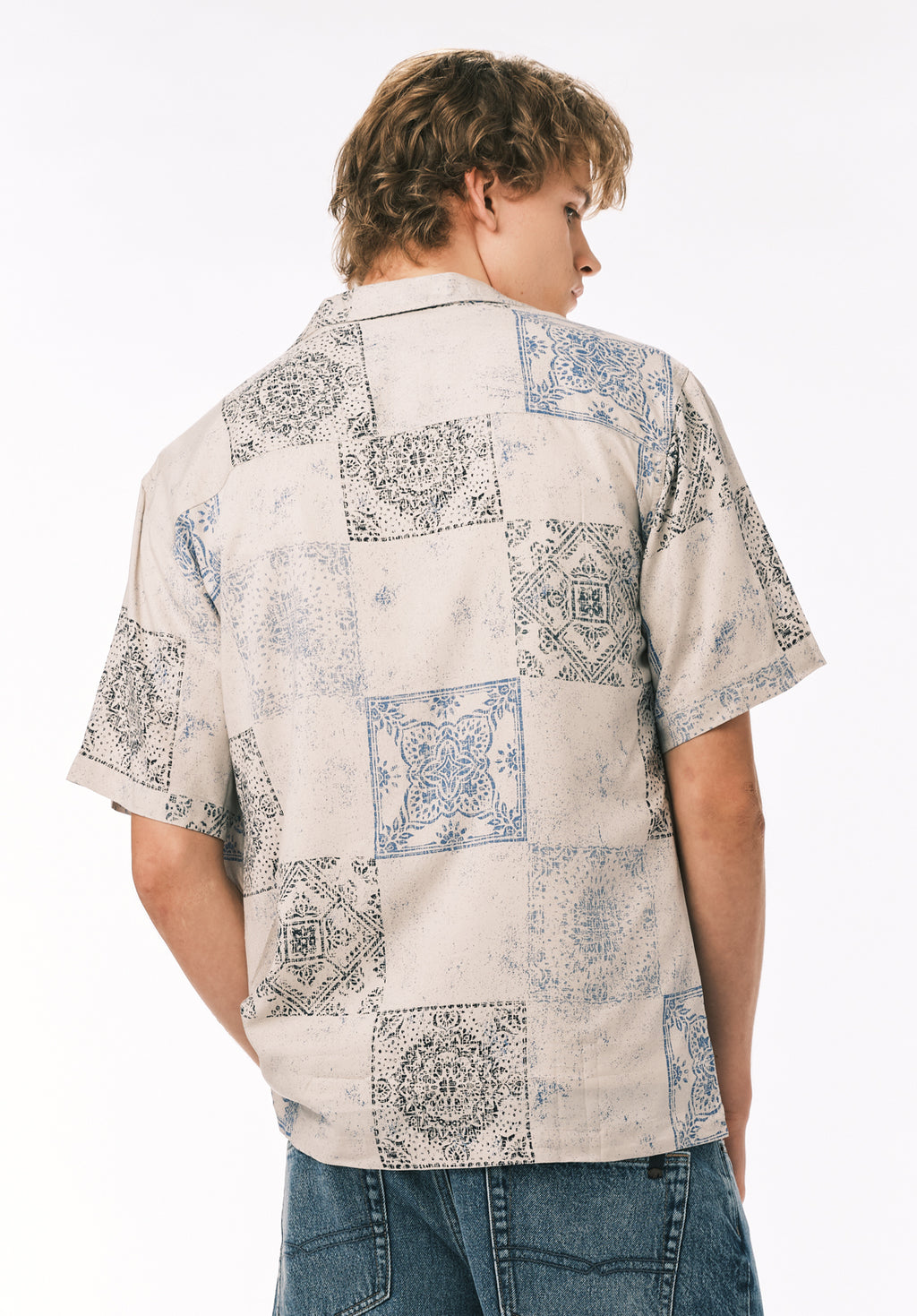 Sandro Men’s Printed Short Sleeve Camp Shirt, Temple Grey - BM24790