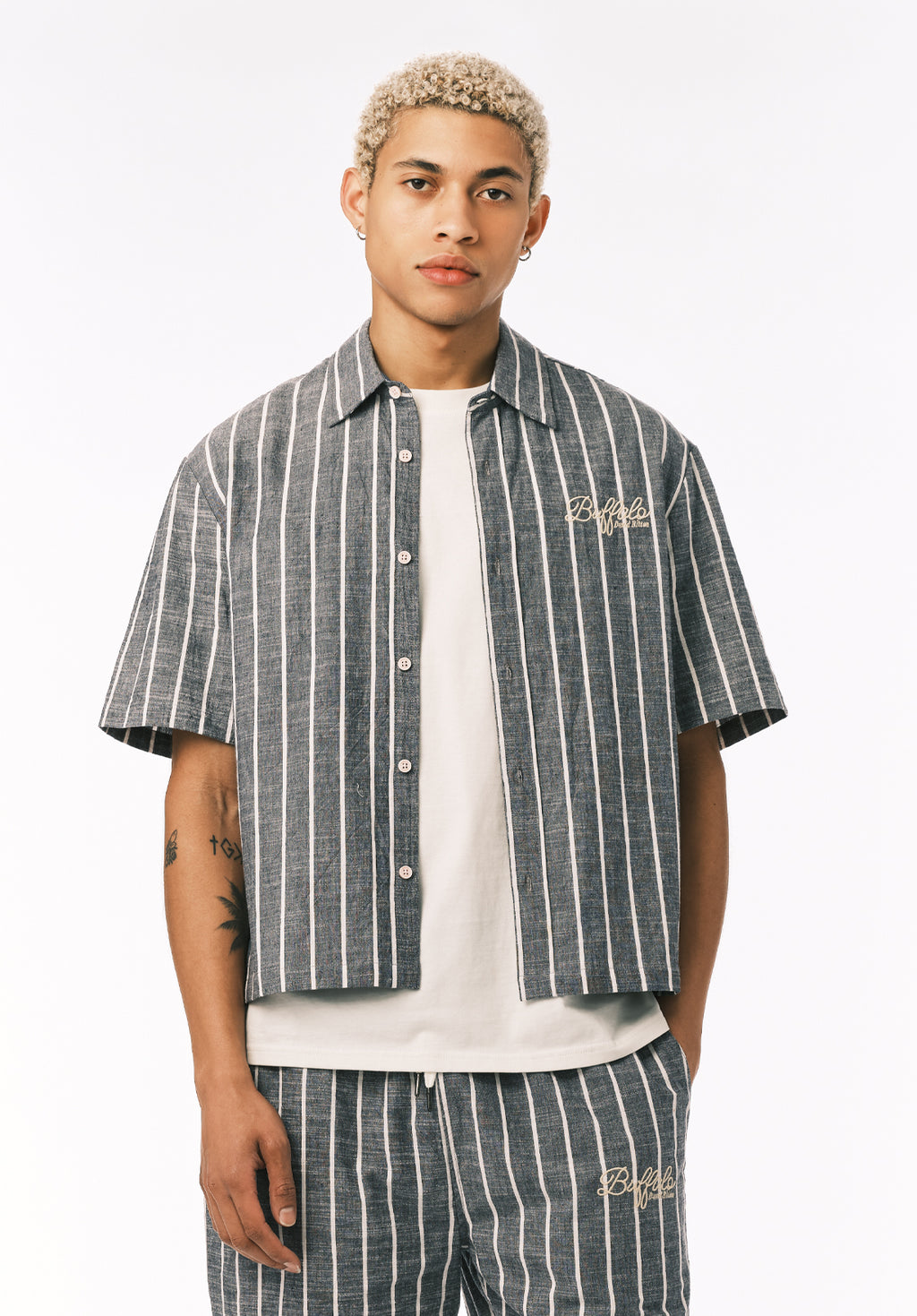 Scott Men’s Short Sleeve Striped Boxy Cropped Shirt, Whale - BM24849