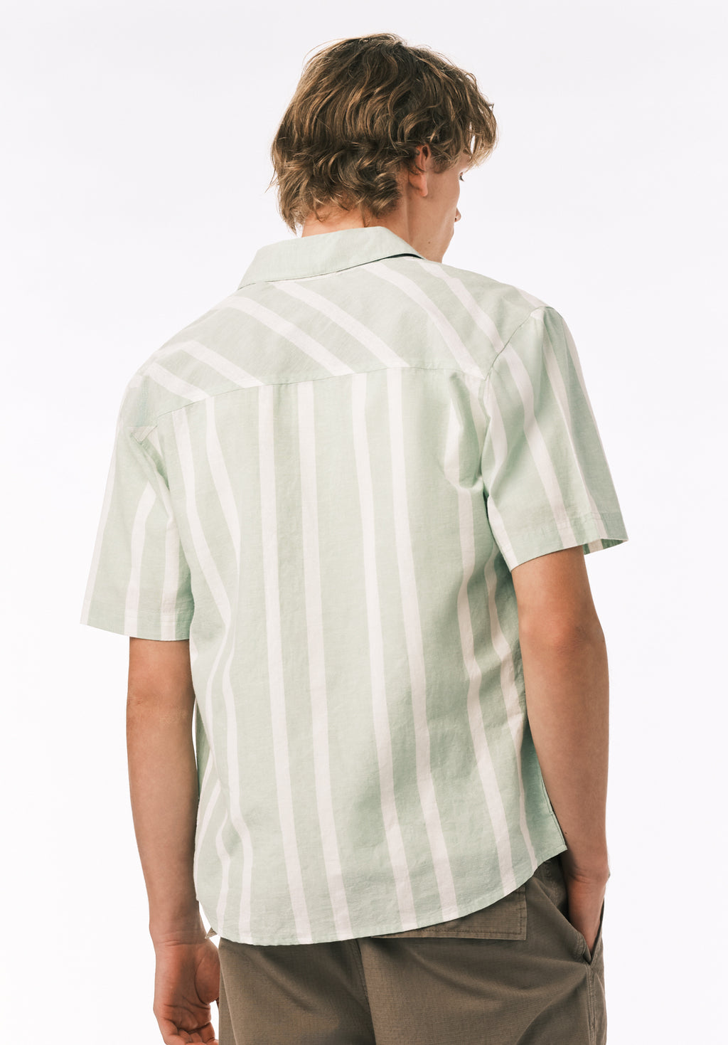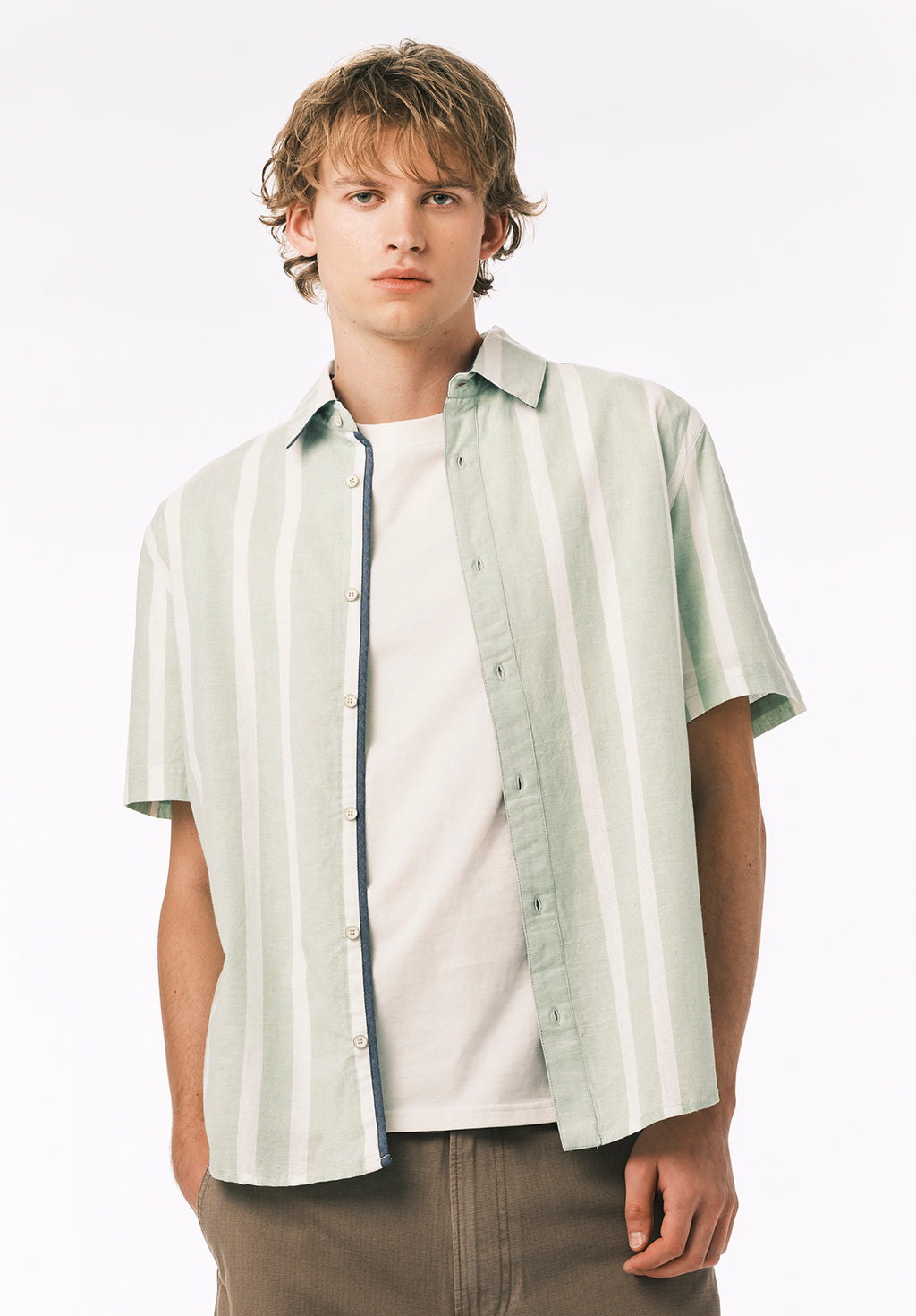 Sulian Men’s Short Sleeve Striped Shirt, Frosty Green - BM24802