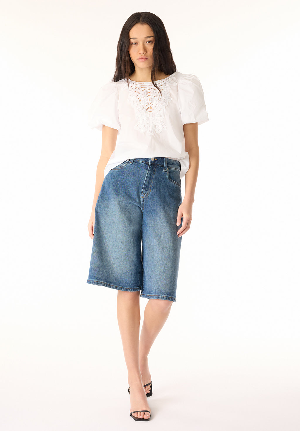 Leonella Women's Puff Sleeve Embroidered Blouse, White - WT0204P
