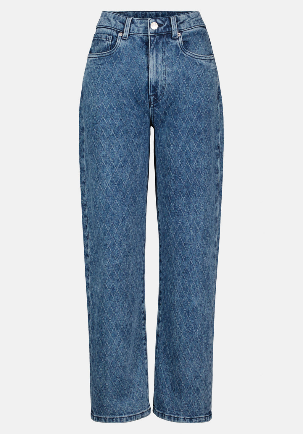Elevate your everyday denim with the Super High Rise Loose Straight Jane Women's Jeans in a vintage-inspired sanded and contrasted wash. Designed for comfort and effortless style, these jeans feature a flattering super high-rise waist and a relaxed straight-leg silhouette. The subtle diamond stitch pattern adds a unique, textured finish, making them a standout piece in your casual wardrobe. Pair them with your favorite tee or an oversized shirt for a laid-back, fashion-forward look. Ideal for street style or weekend wear, these jeans bring retro vibes with modern comfort.