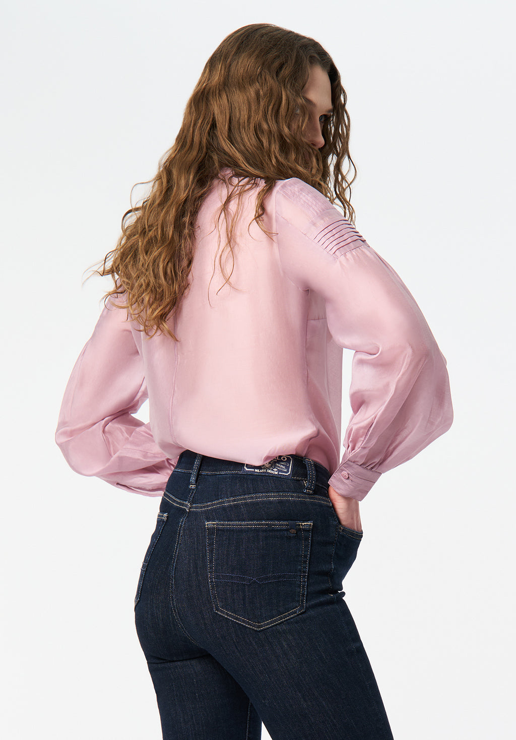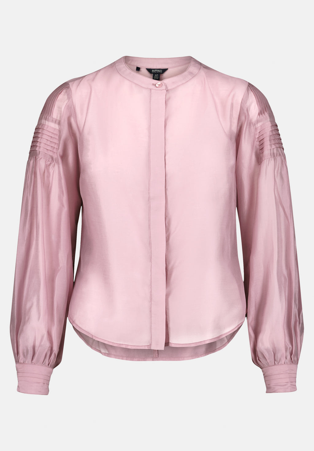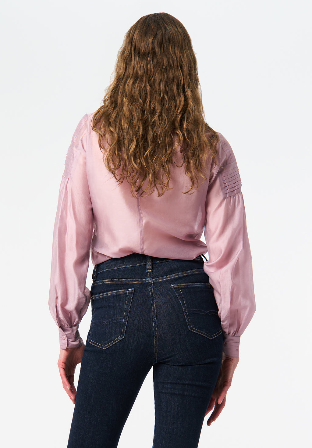 Crafted with subtle pleated detailing on the shoulders and elegant long sleeves, this lightweight blouse blends classic charm with modern refinement. Its silky texture and hidden button placket make it an easy choice for polished everyday style or dressier occasions.