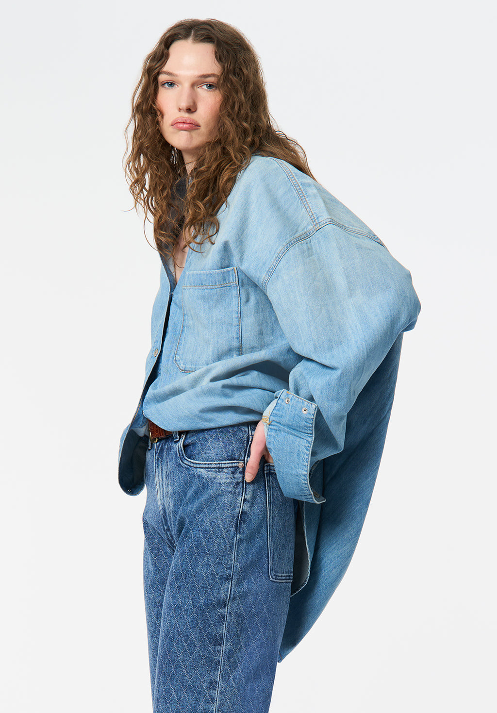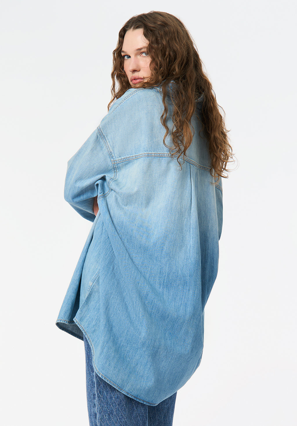 Safiya Oversized Women's Lightweight Denim Shirt, Light Blue - BL16114