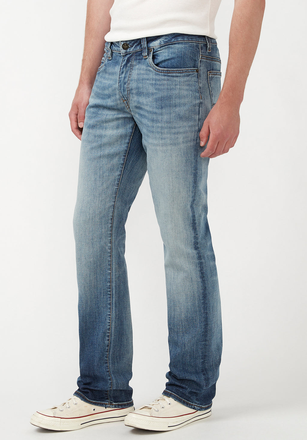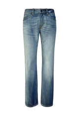 Jean bleu stretch en denim avec effet sablé. Ce modèle a une taille mi-haute avec une coupe droite confort de la cuisse jusqu’à l’ourlet. L’effet délavé donne un air vintage à ce jean. Notre Collection AUTHENTIC possède des textures riches et un denim durable avec l'extensibilité idéale pour votre confort