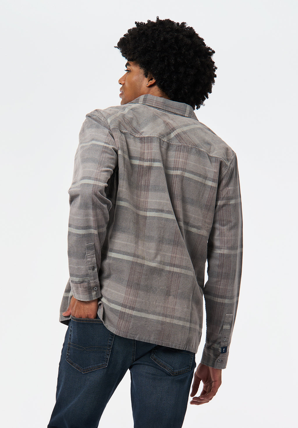 Chemise en velours côtelé à carreaux manches longues Sinclair pour homme, Rayure grise - BM24693