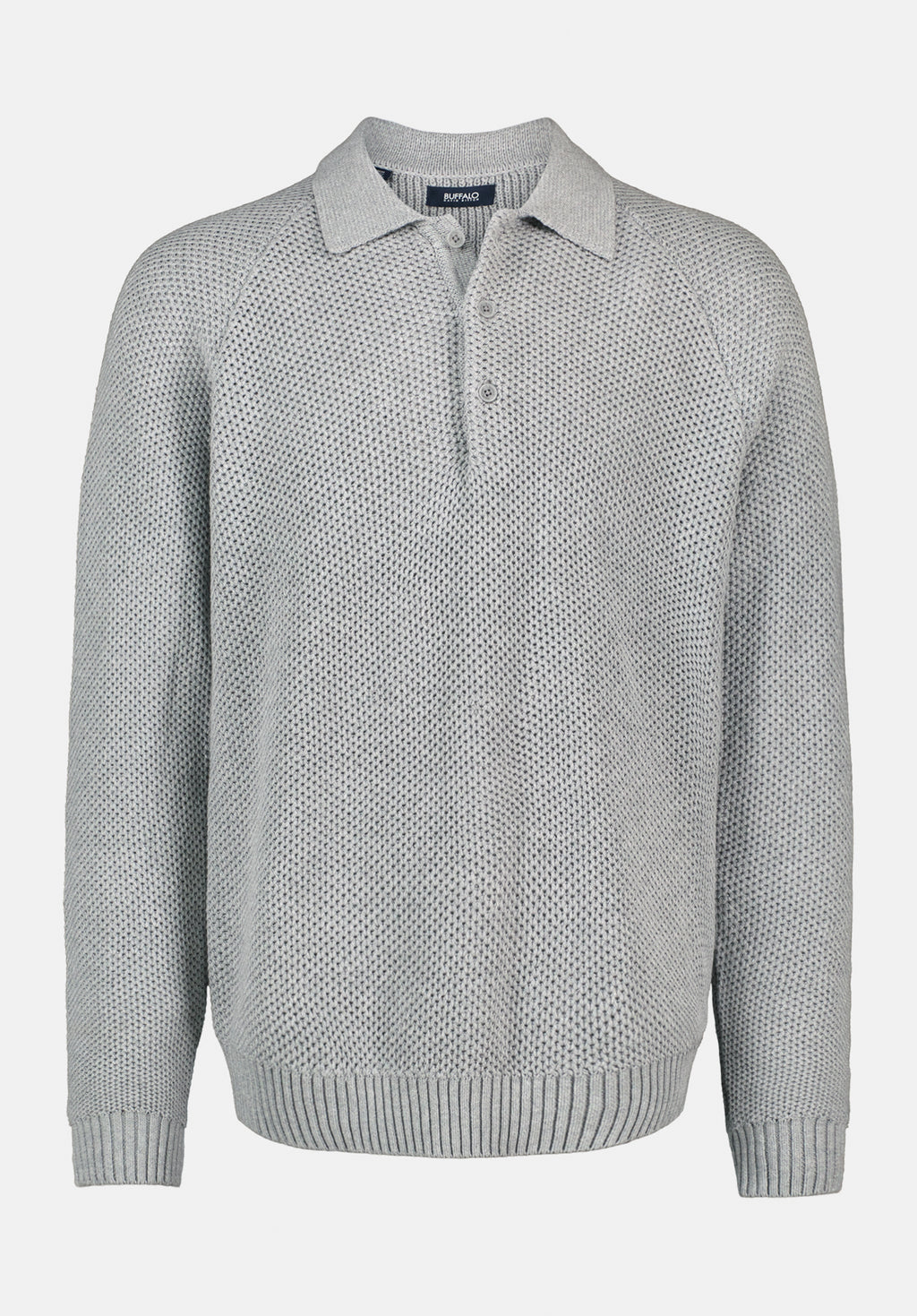 Polo en tricot décontracté à manches longues Warren pour homme, Gris chiné - BM24699