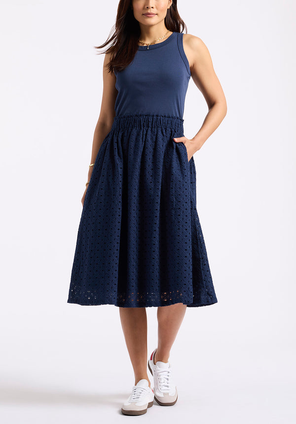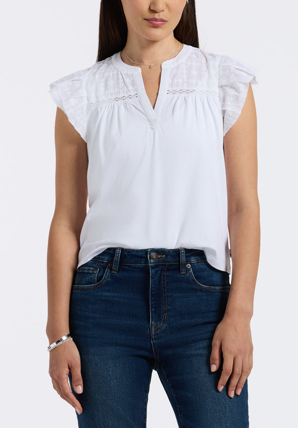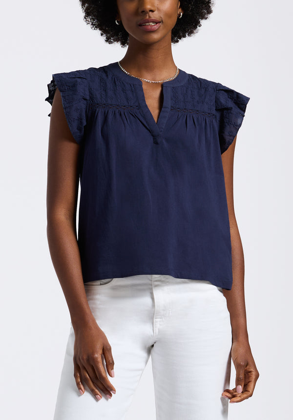 Haut à manches papillon avec détails brodés pour femme Mckaylie, bleu marine - KT0210P