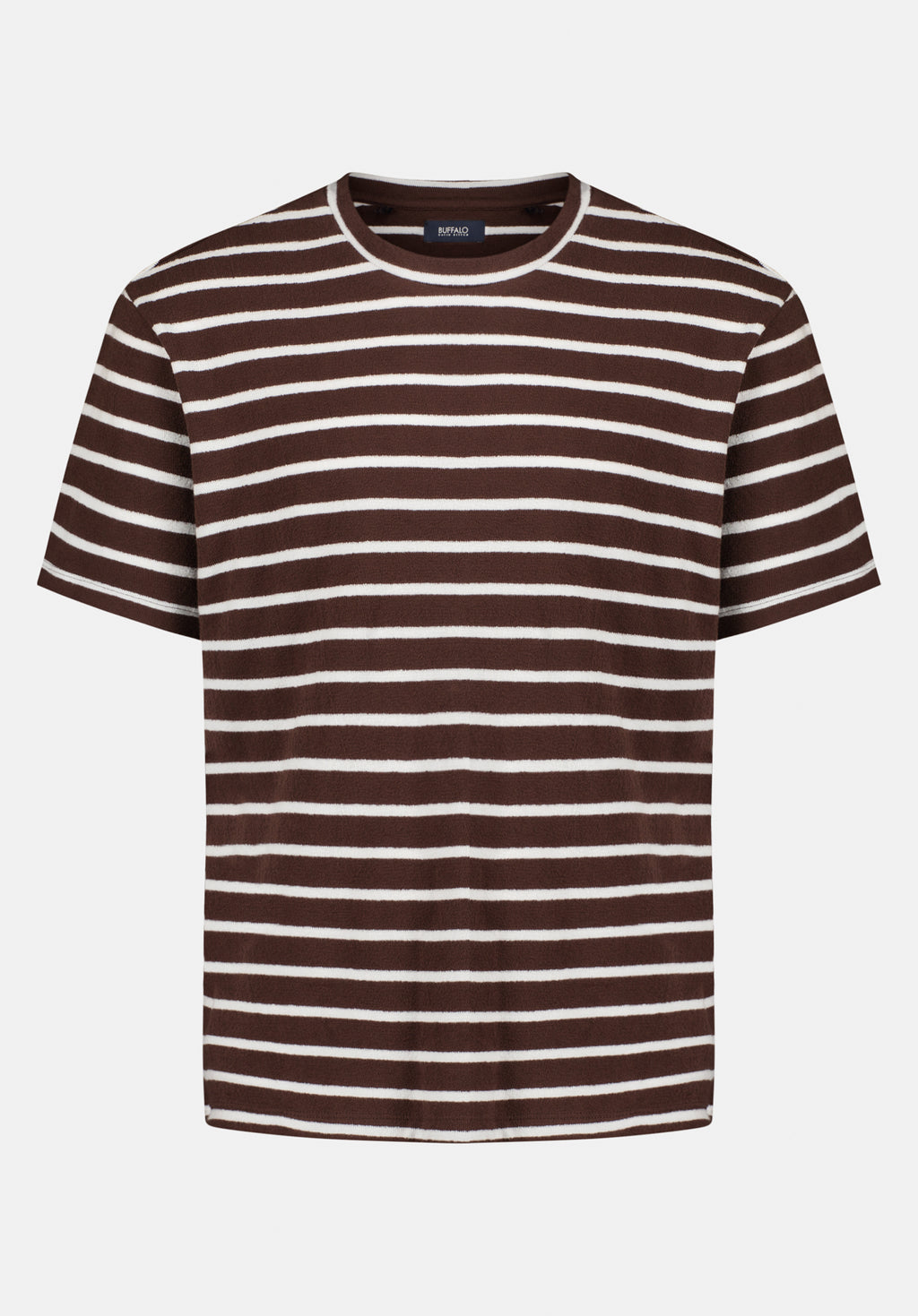 Top rayé homme Kosta en coton doux, col rond classique et coupe régulière. Rayures horizontales intemporelles pour un style décontracté et polyvalent, à porter seul ou sous une veste.