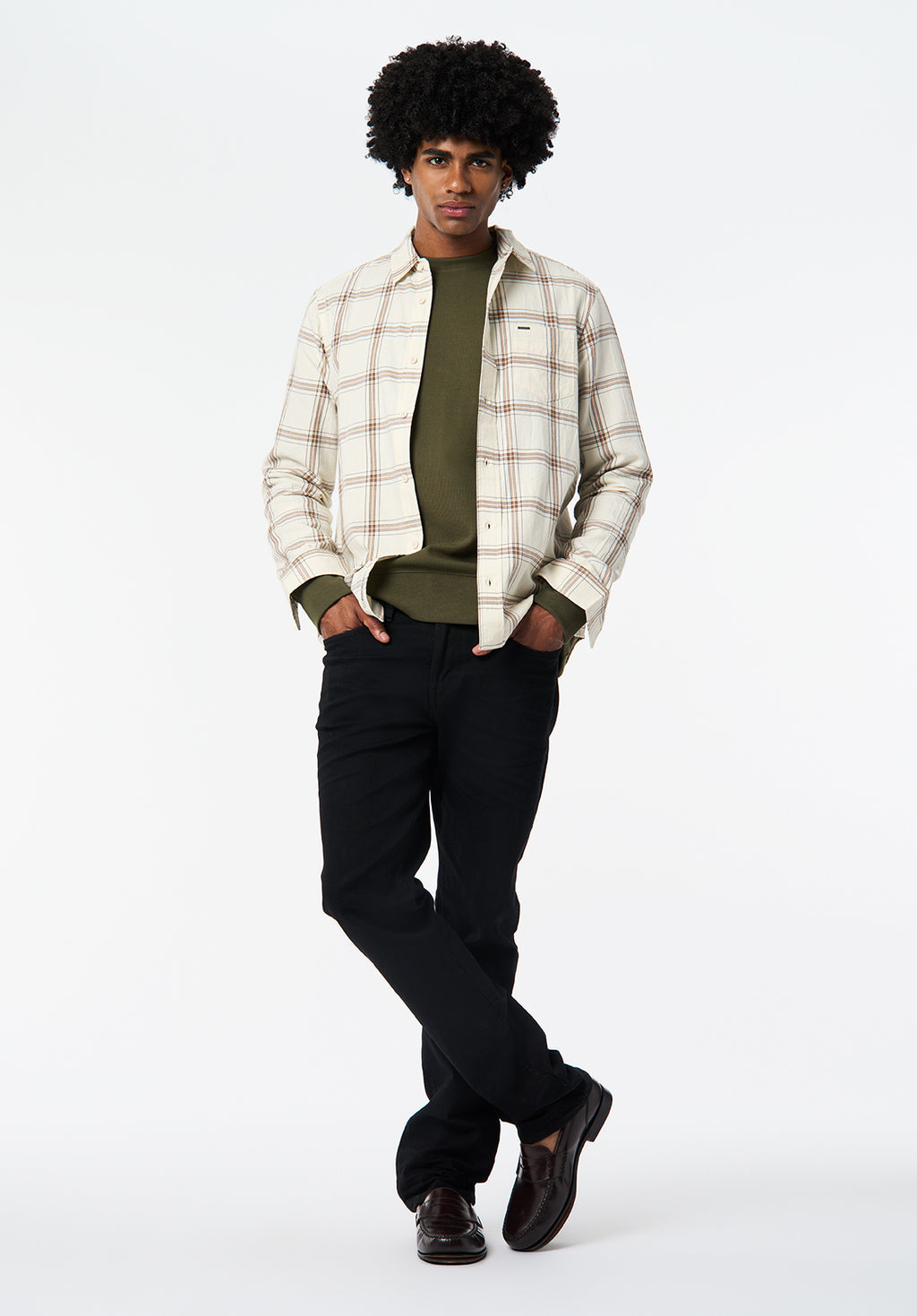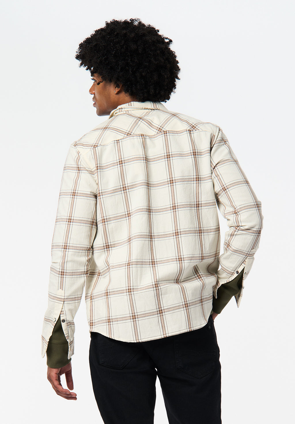 Chemise à carreaux à manches longues Sago pour homme, Crème - BM24689
