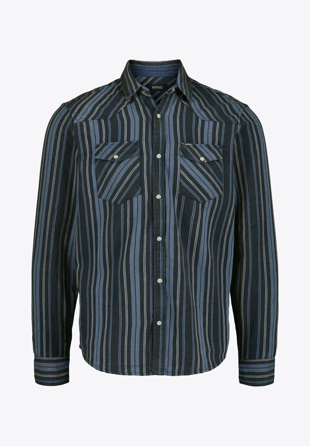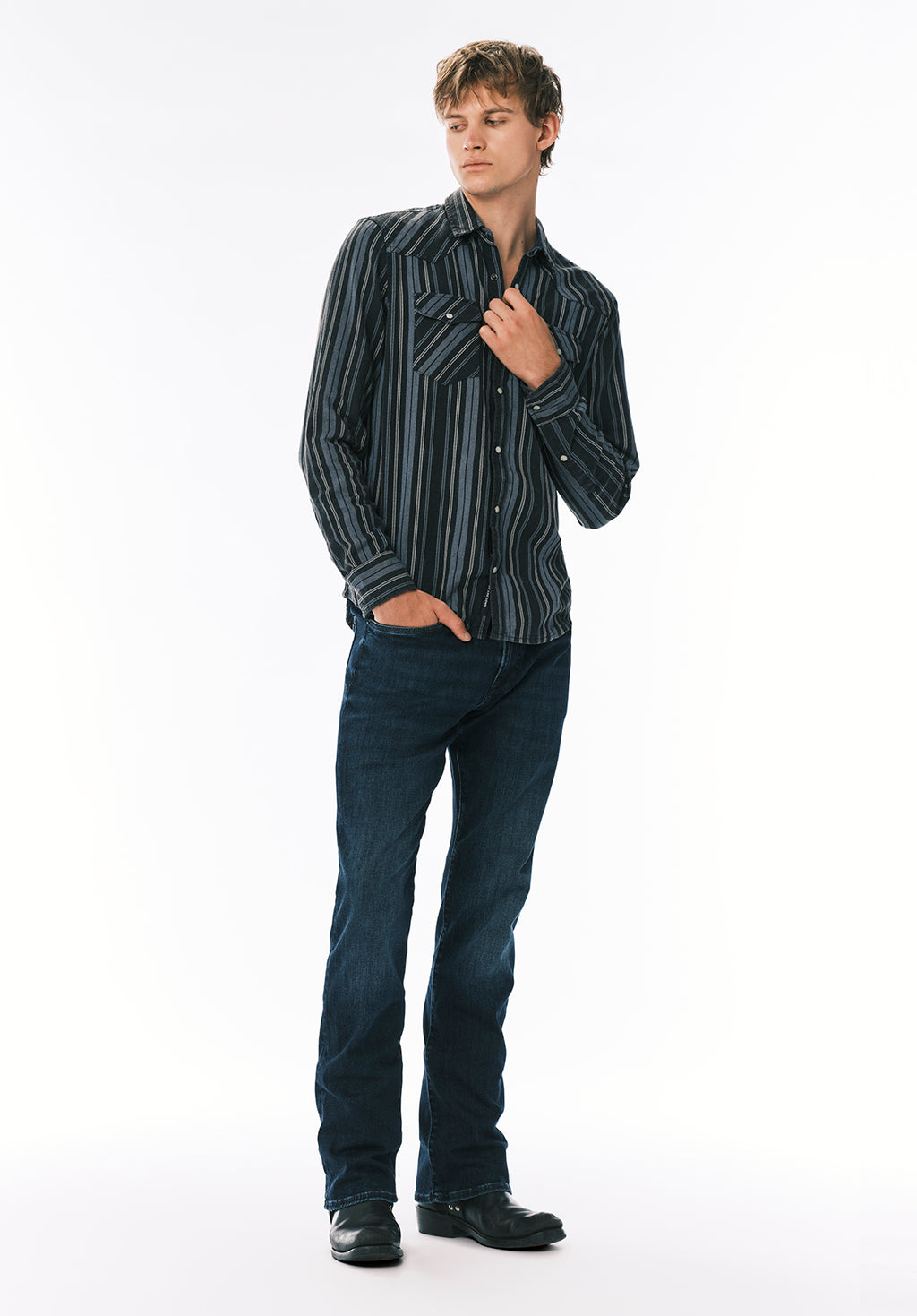 Sierra Chemise Western à Rayures pour Homme à Manches Longues, Bleu Minuit - BM24751