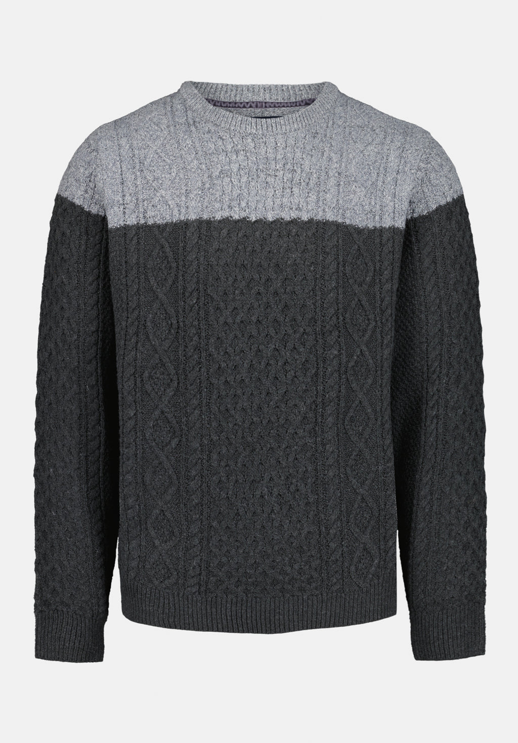 Chandail décontracté à blocs de couleur en tricot torsadé Wintor pour homme, Gris chiné - BM24748