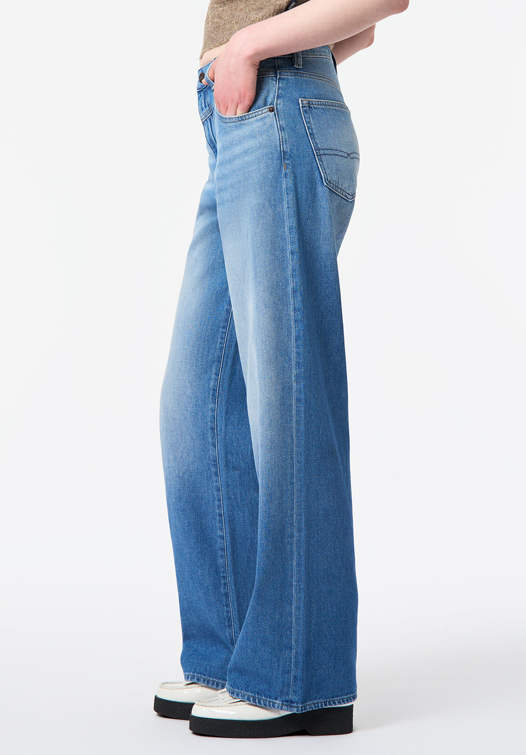 Jean à jambes larges taille haute Addie pour femme, Bleu sablé - BL16132