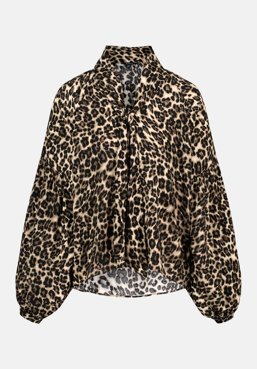Blouse imprimée Carissa pour femme avec col noué et manches volumineuses, Léopard - WT0207