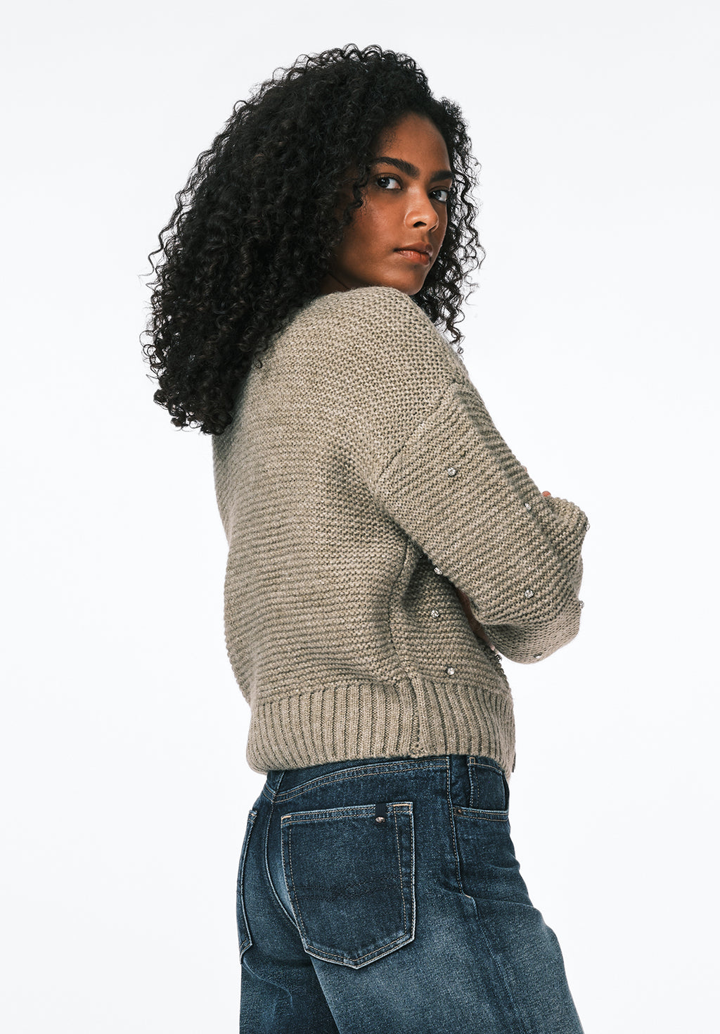 Cardigan boutonné en tricot orné Odilia pour femme, Vert foncé - SW0163