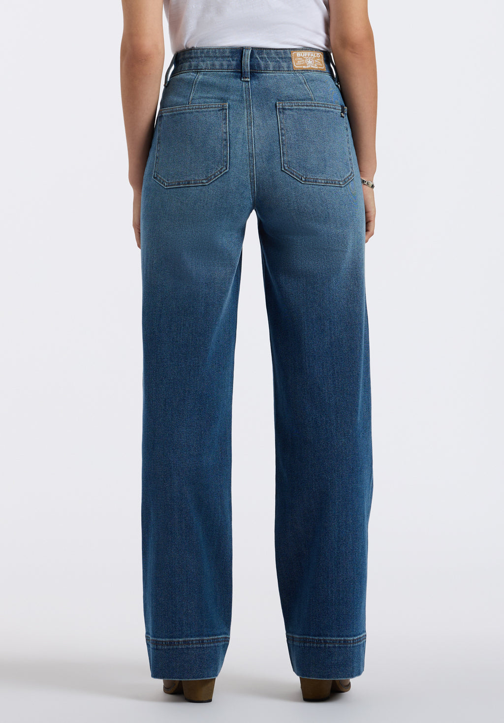 Jean large taille haute Addie pour femme, Indigo authentique usé - BL16064