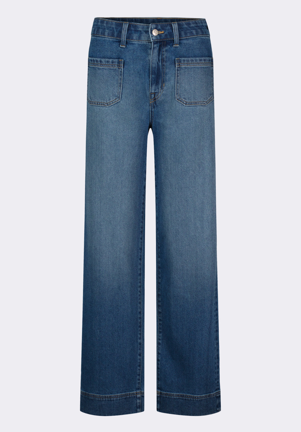 Affirmez votre style avec ce jean taille haute à jambes larges. Conçu pour allier confort et élégance, ce jean présente une coupe ample structurée qui crée une silhouette décontractée mais sophistiquée. Le denim à lavage moyen et les grandes poches avant ajoutent une touche d'inspiration utilitaire, tandis que la taille haute met en valeur votre silhouette. Idéal pour des looks habillés ou décontractés, ce jean est un incontournable polyvalent de votre garde-robe.