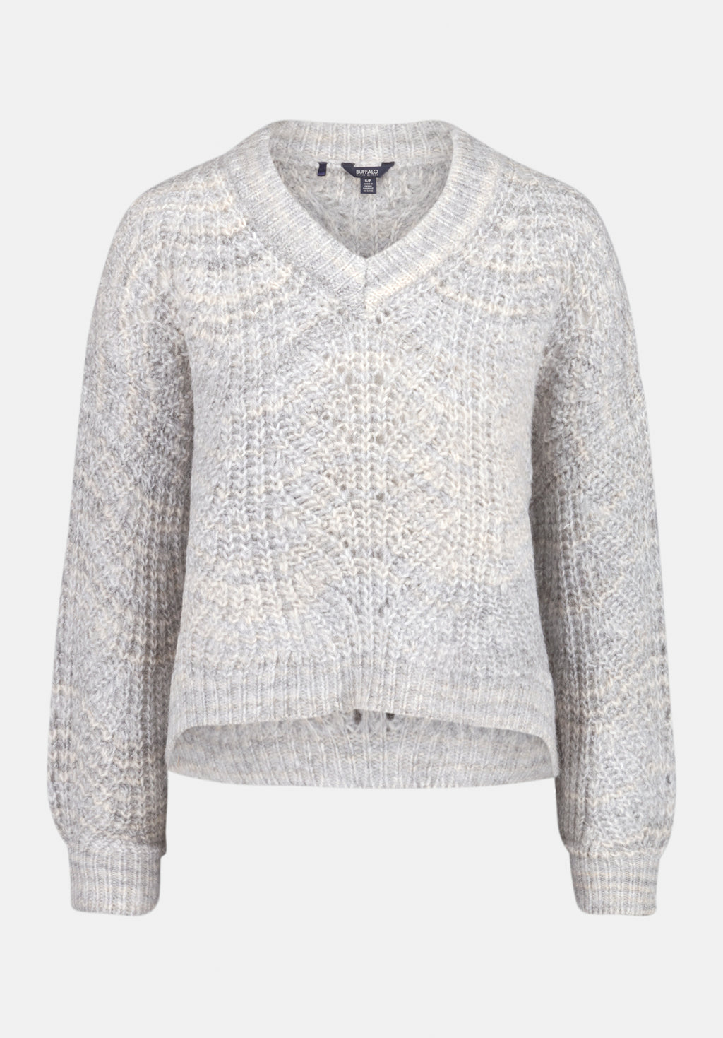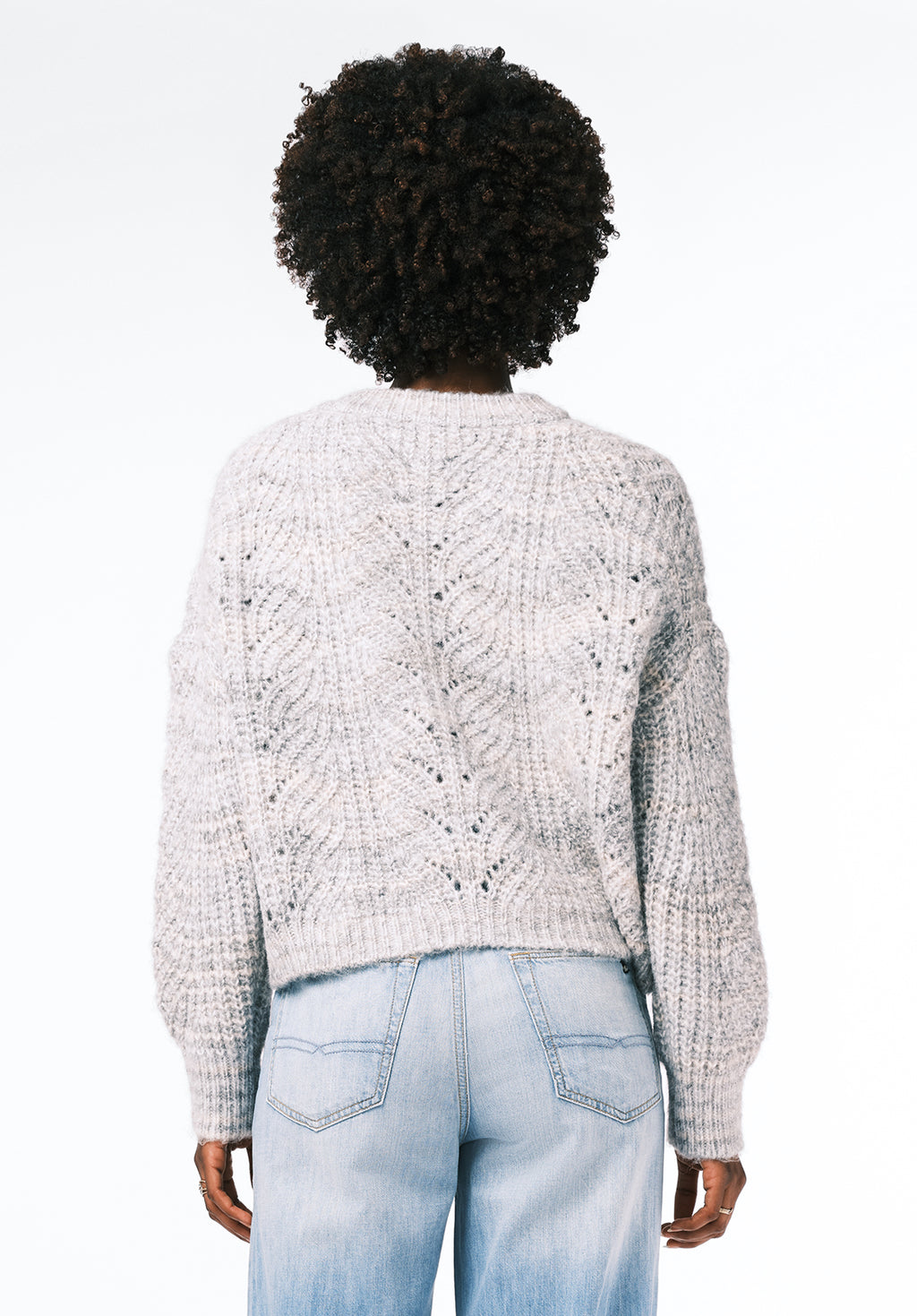 Chandail en tricot ajouré texturé à col en V Erdem pour femme, Gris clair chiné - SW0134