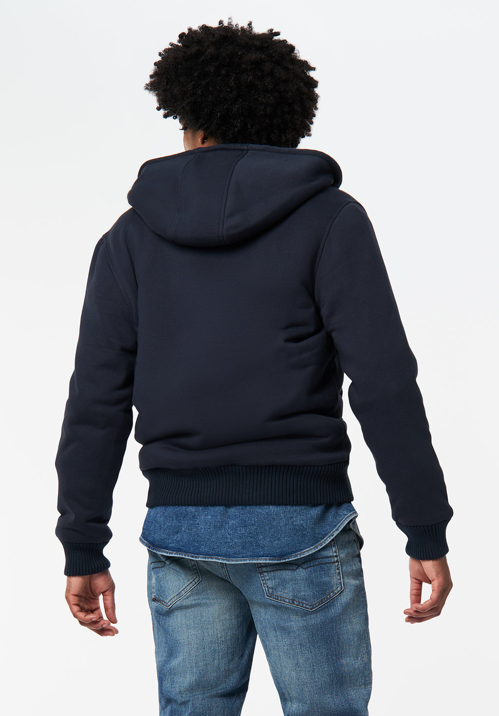 Veste à capuche décontractée à fermeture éclair complète Fasox pour homme avec doublure en sherpa, Whale - BM24735