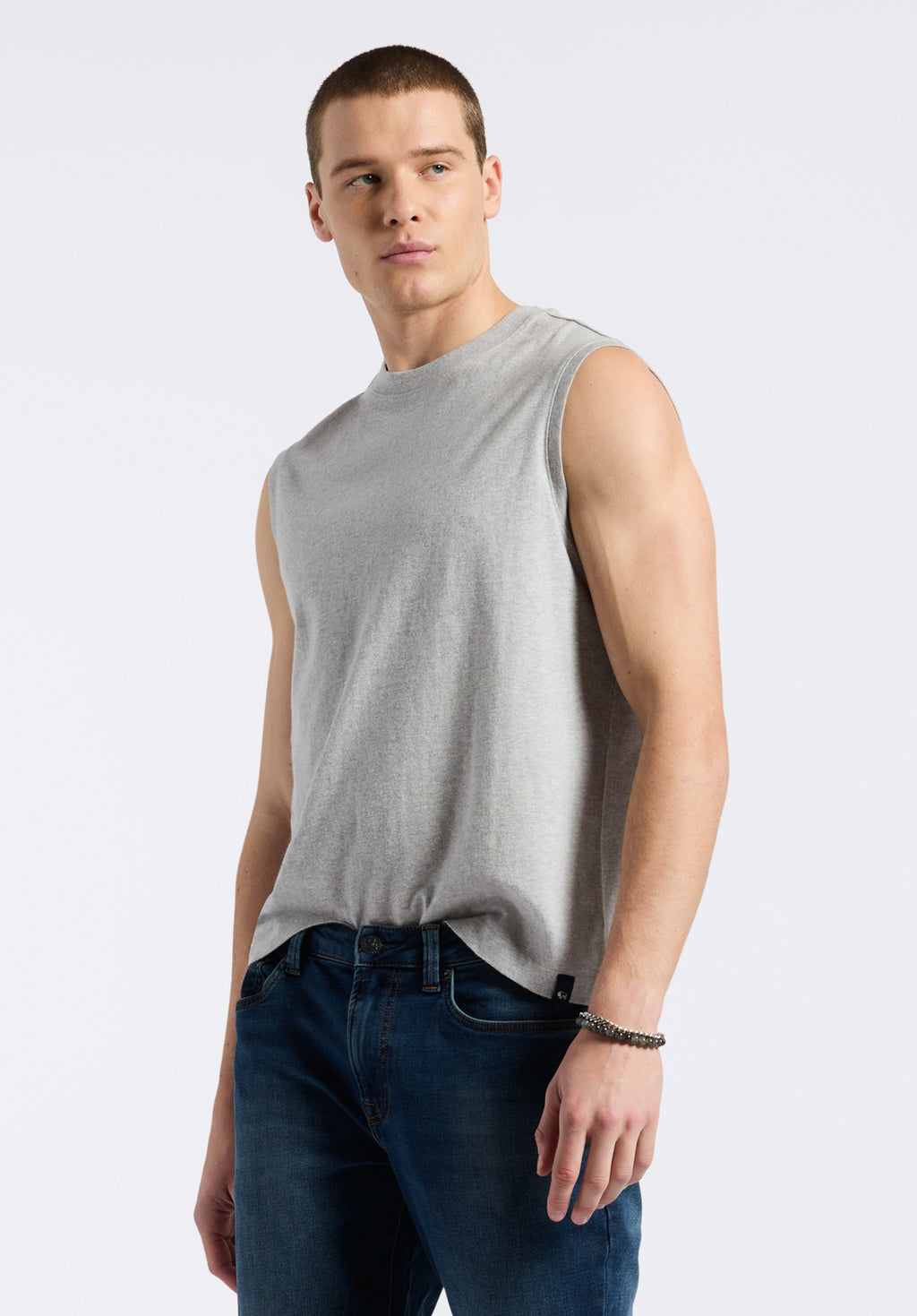 Débardeur en jersey coupe décontractée à col rond pour homme Kingster, Gris chiné - BM24601