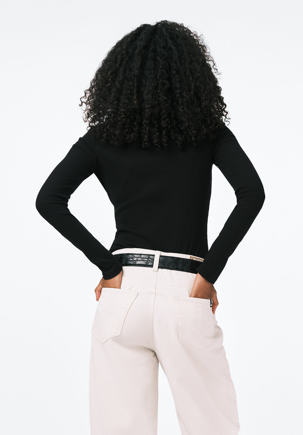 Haut à col roulé côtelé Mavra pour femme, Noir - KT0241