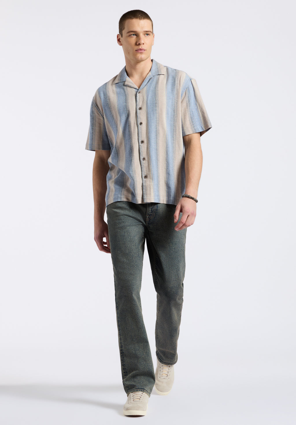 Représentant des classiques intemporels avec une touche de polyvalence, la Coupe Régulière trouve l'équilibre parfait entre confort et style, offrant des silhouettes décontractées qui respirent le charme naturel. Avec des épaules détendues et des sections centrales légèrement plus généreuses, cette coupe propose des pièces conçues pour accompagner chaque moment de la journée avec aisance et raffinement Le mannequin porte une taille M. Taille : 191 cm, Tour de taille : 79 cm.