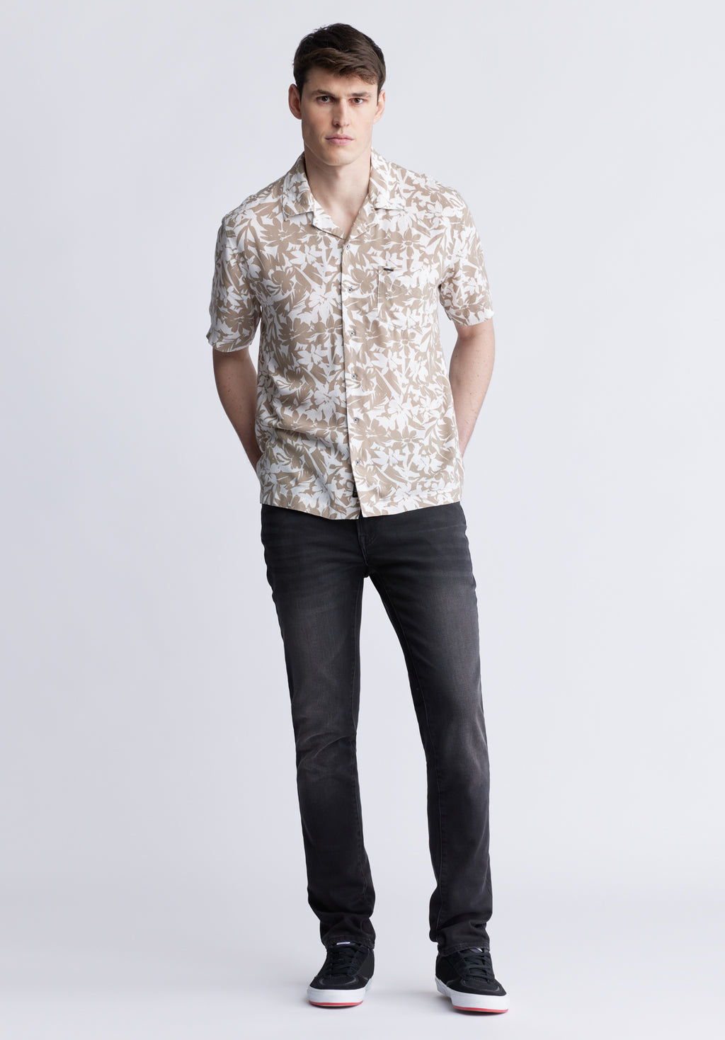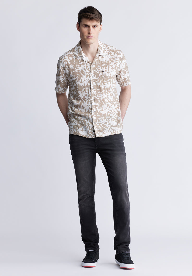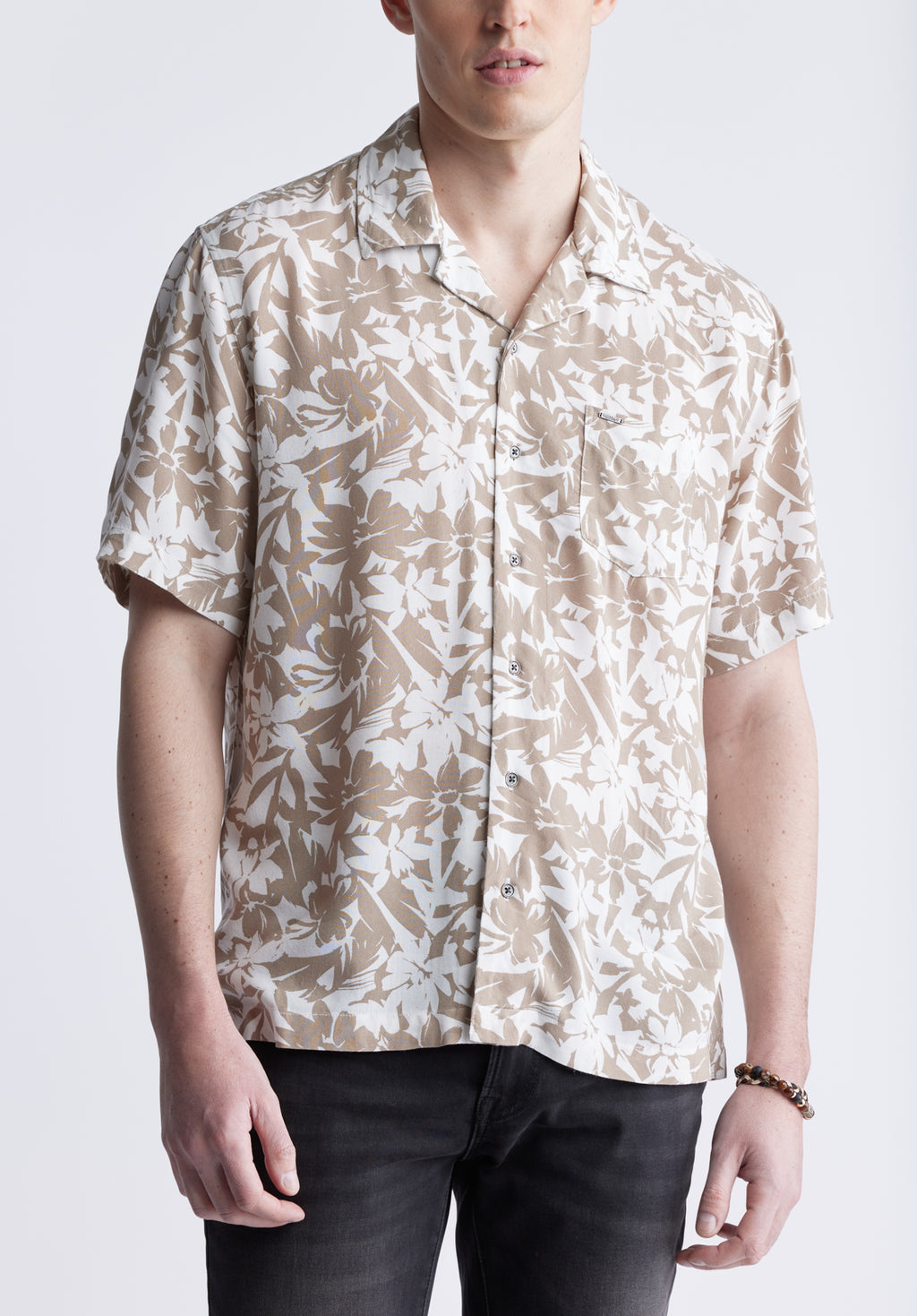 Chemise Sandro à manches courtes pour homme, blanc et beige - BM24364