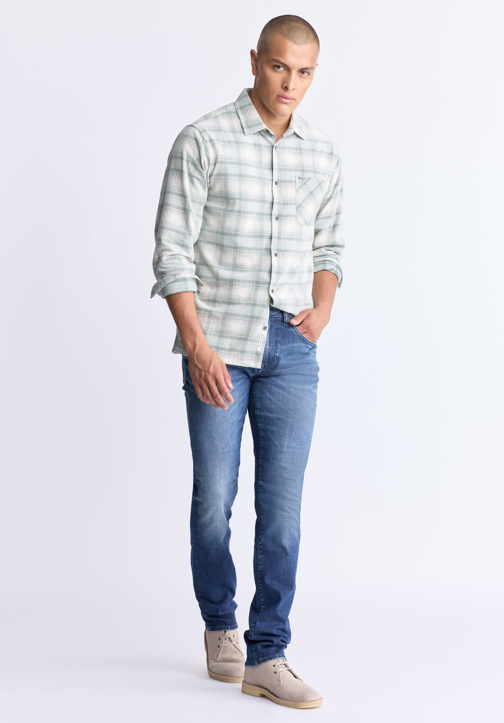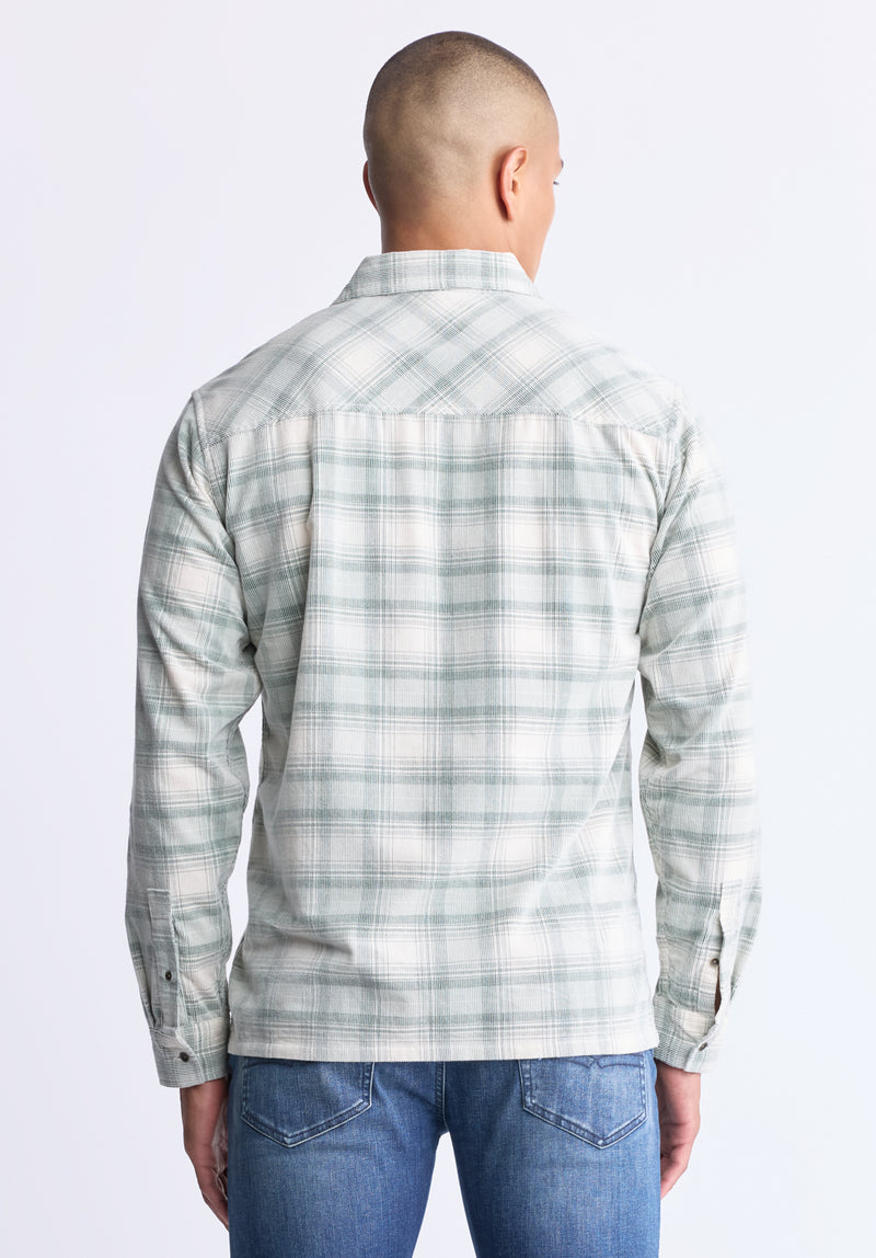 Chemise à carreaux boutonnée Satro pour homme, vert clair - BM24498