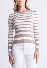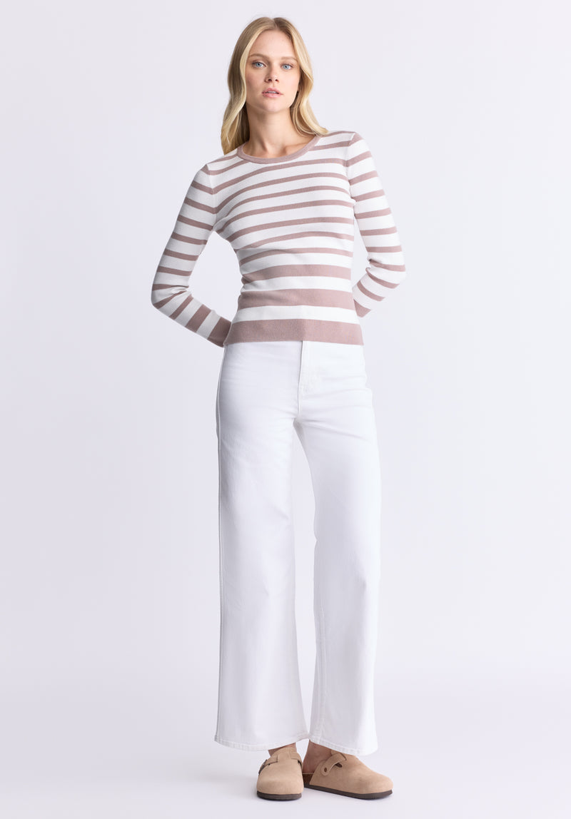 Pull rayé à manches longues Scotlyn pour femme, blanc et beige - SW0103H