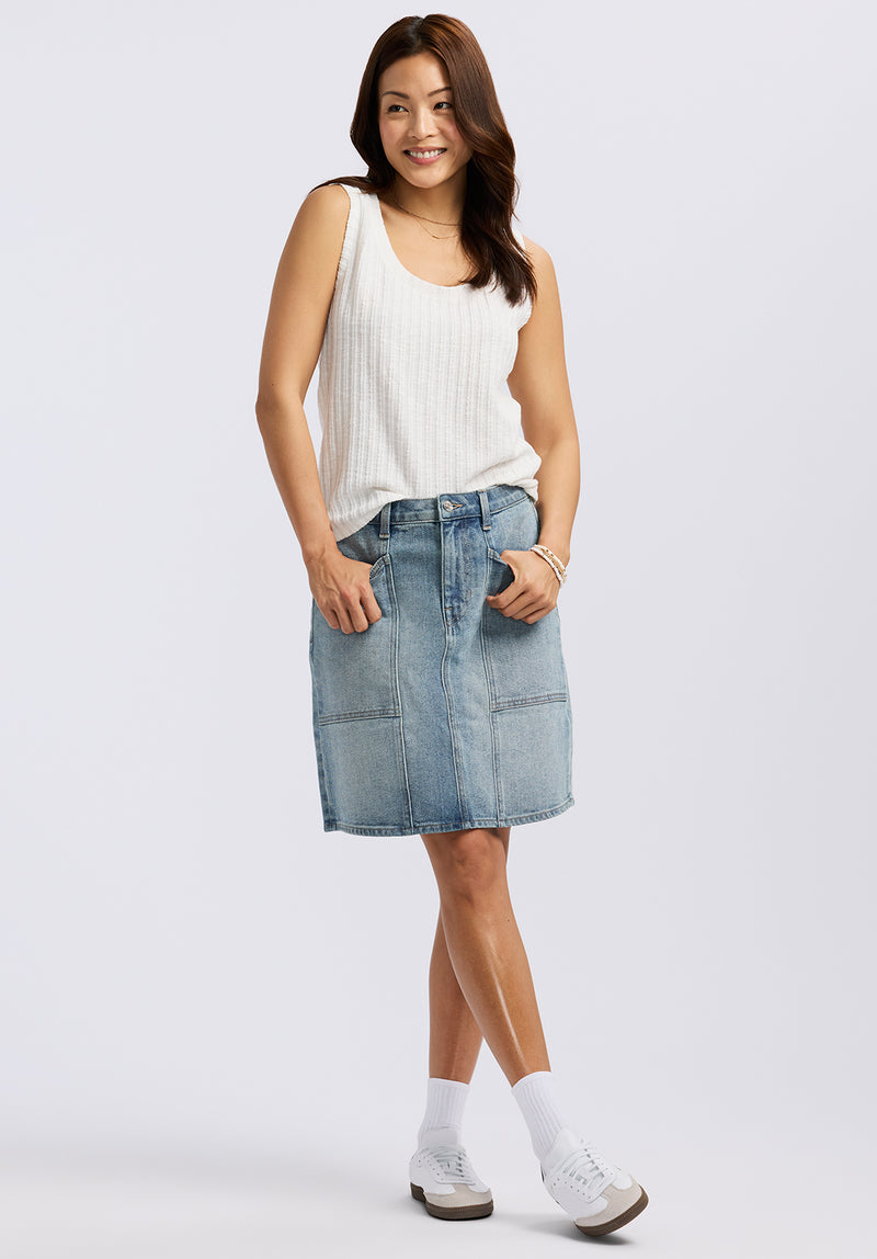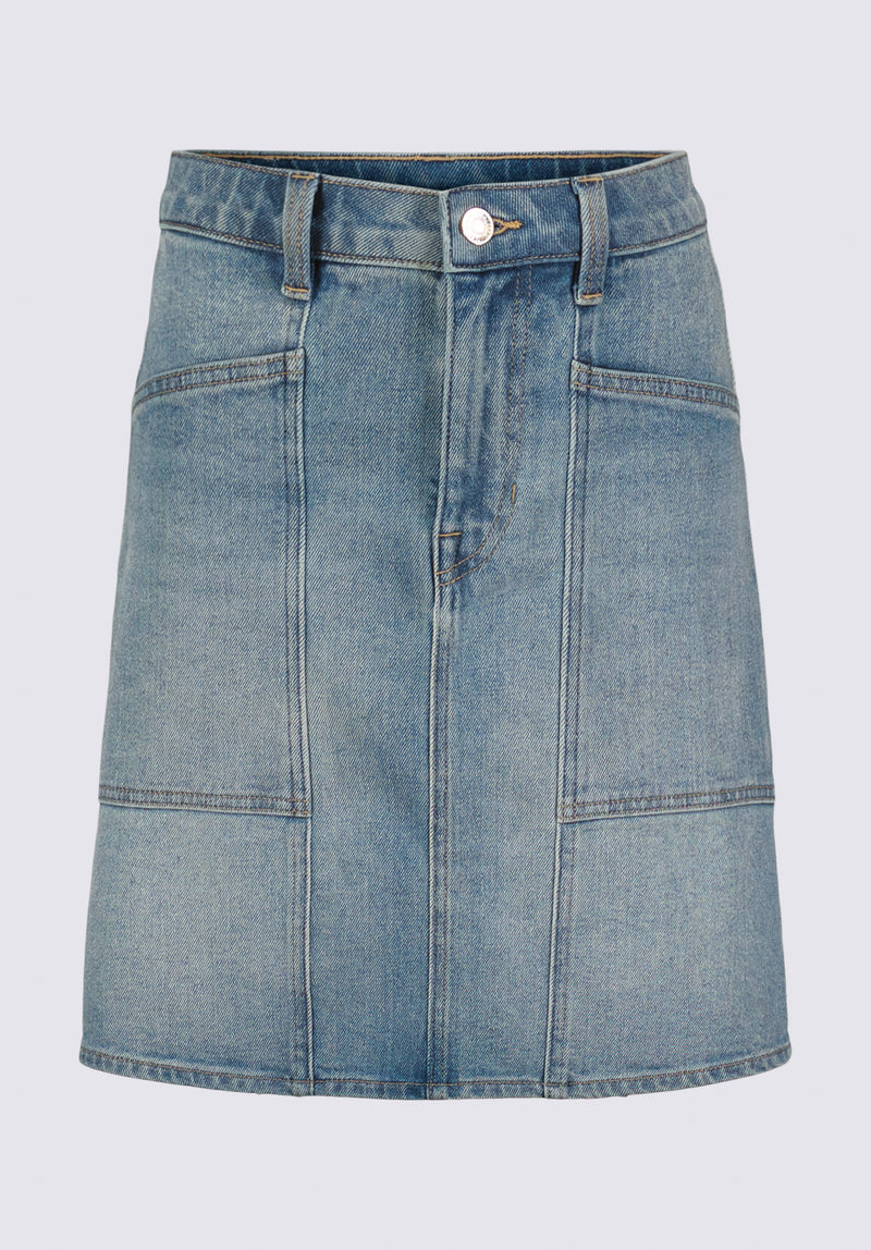 Adoptez un look tendance avec la jupe en jean mi-longue Sophia. Conçue en denim de qualité à délavage moyen, cette jupe femme taille haute offre une coupe flatteuse et confortable. Dotée de poches plaquées sur le devant, de coutures discrètes et d’une fermeture zippée avec bouton, elle allie style classique et modernité. Idéale pour une tenue décontractée ou chic, la jupe Sophia se porte facilement avec un t-shirt ou un chemisier et des baskets. Parfaite pour vos looks casual du quotidien ou vos sorties stylées.