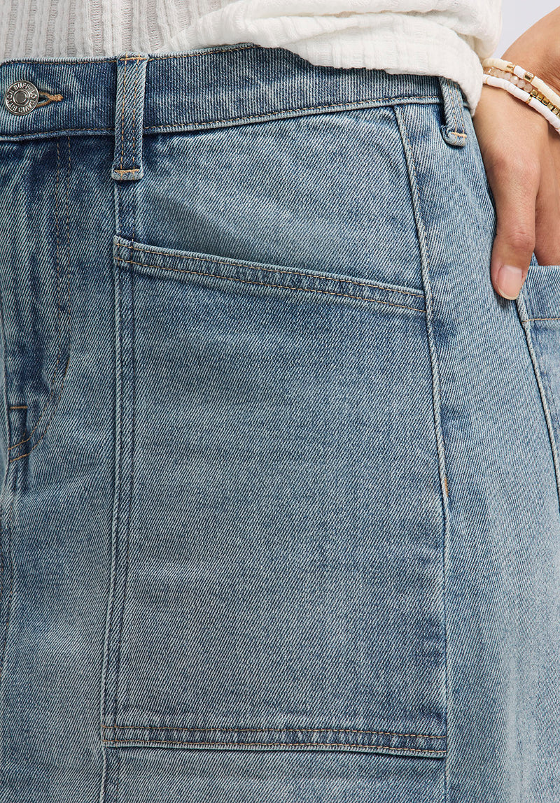 Jupe mi-longue taille haute en jean Sophia, indigo - BL16022
