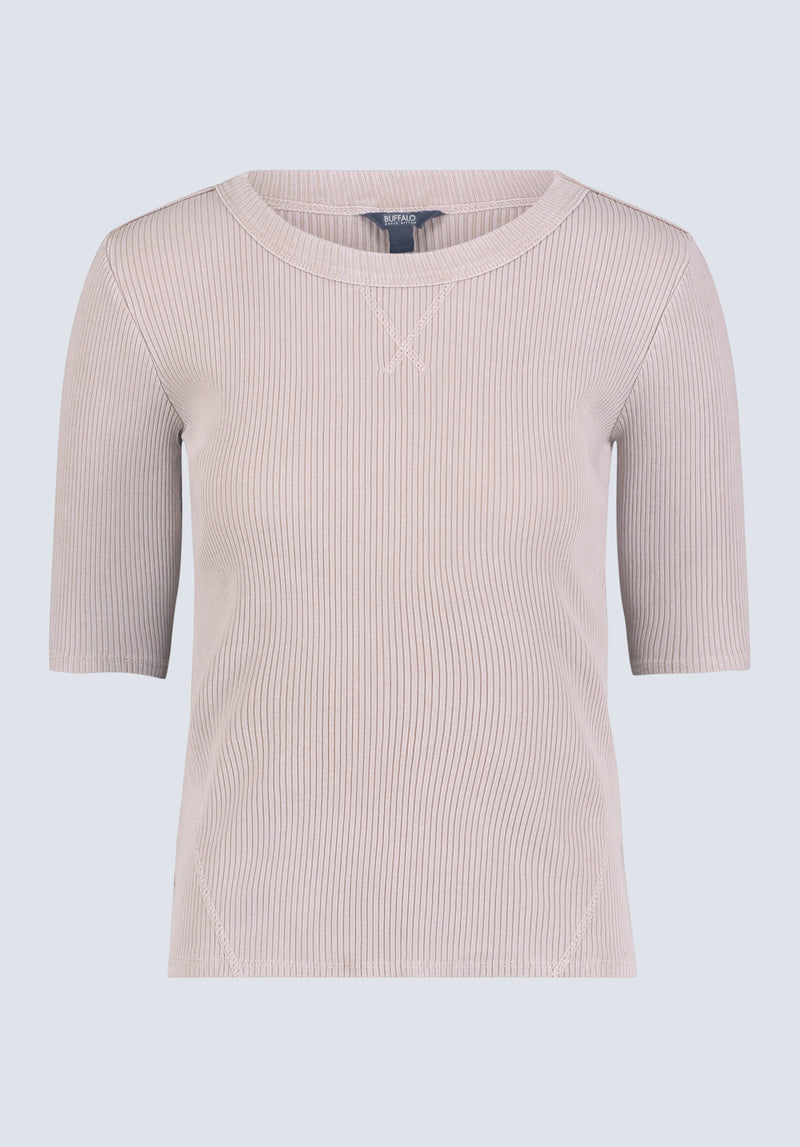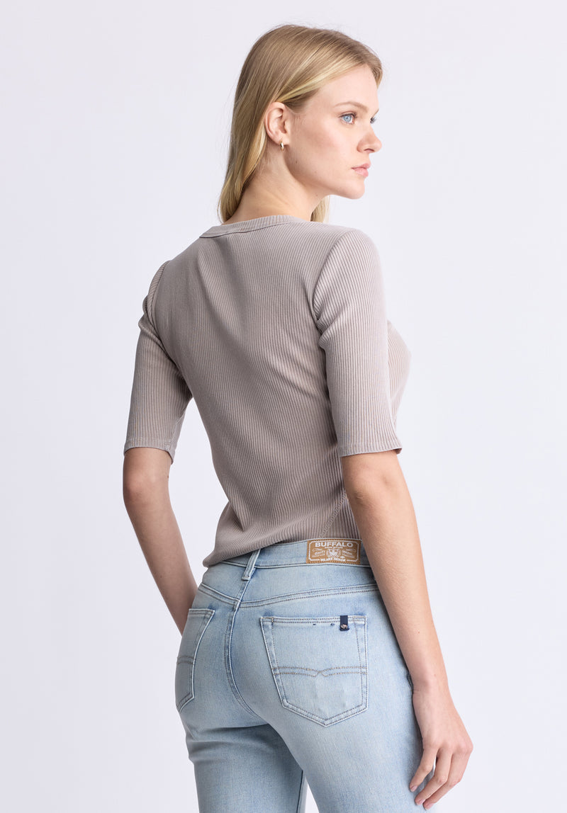 Haut à manches mi-longues côtelé Tabbey pour femme, taupe - KT0172H