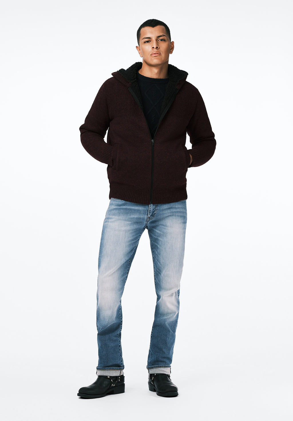 Veste à capuche en tricot à fermeture éclair complète Walmick pour homme avec doublure en sherpa, Fico - BM24739