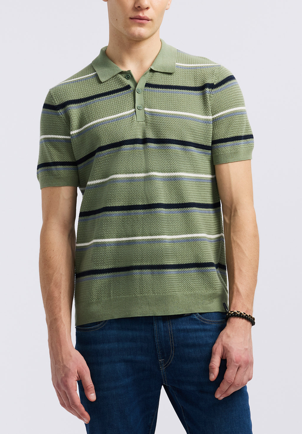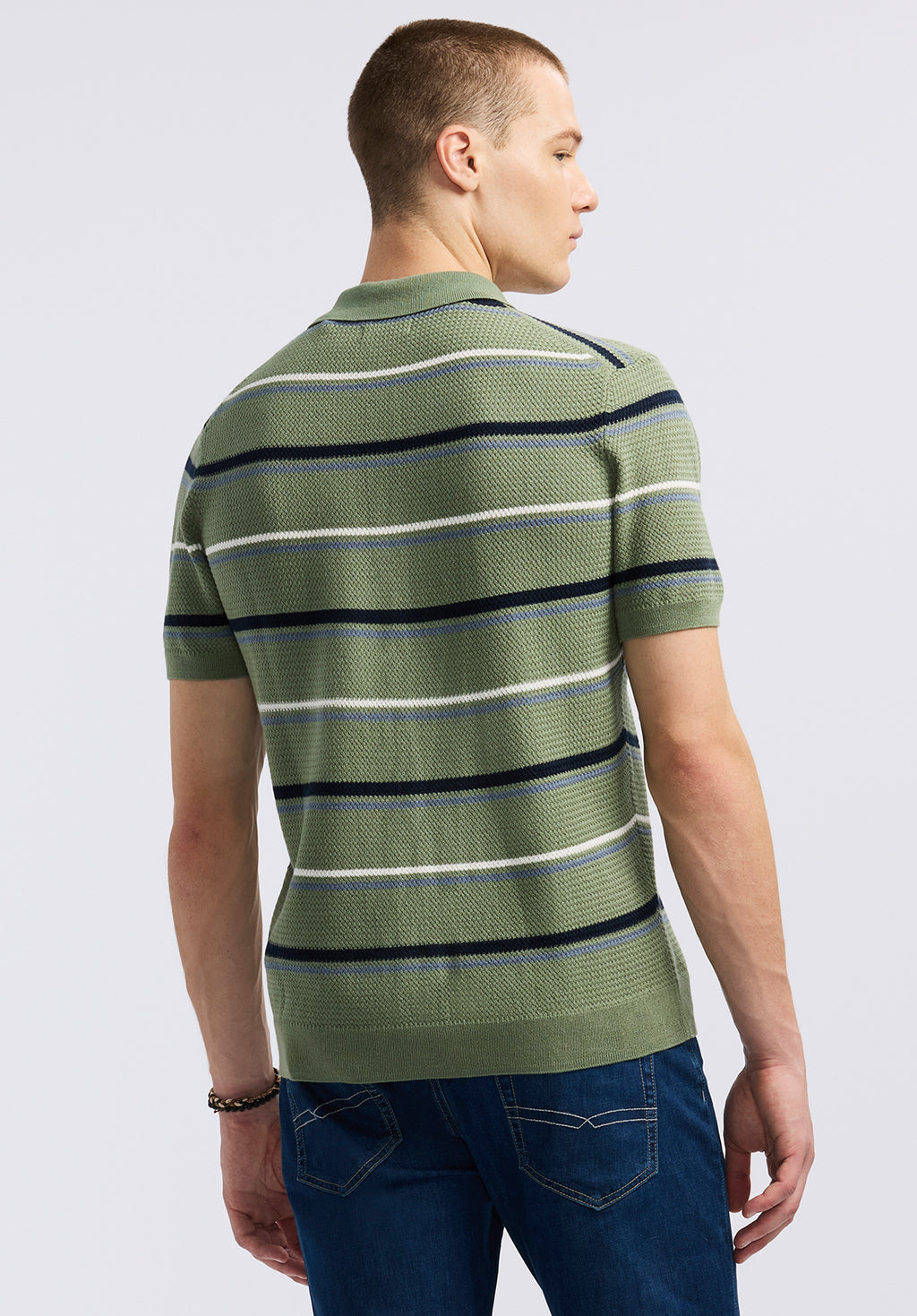 Polo en maille à rayures manches courtes pour homme Winder, vert haie - BM24622