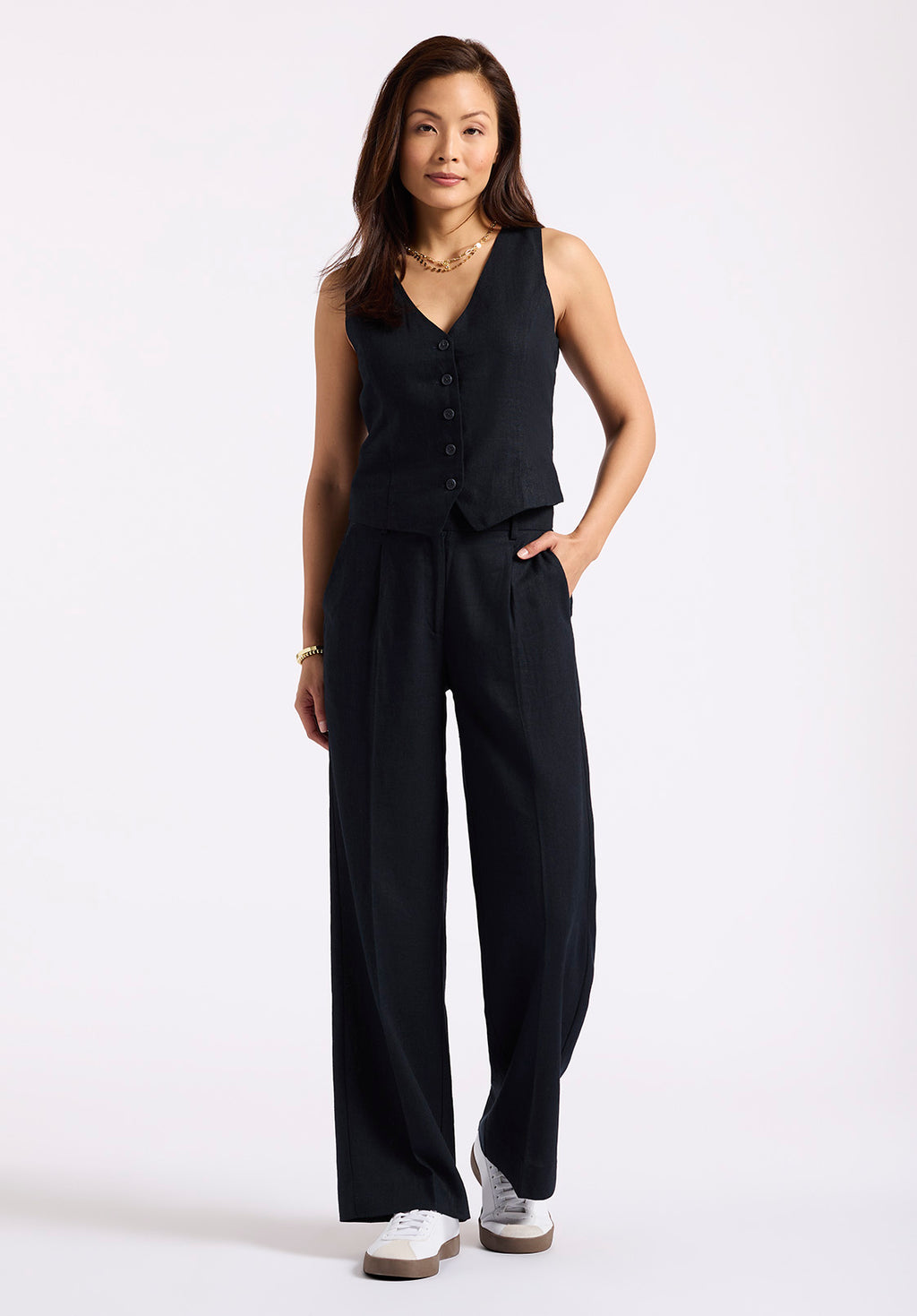 Adelina Women's Linen Blend Wide-Leg Pants, Black - WB0026P