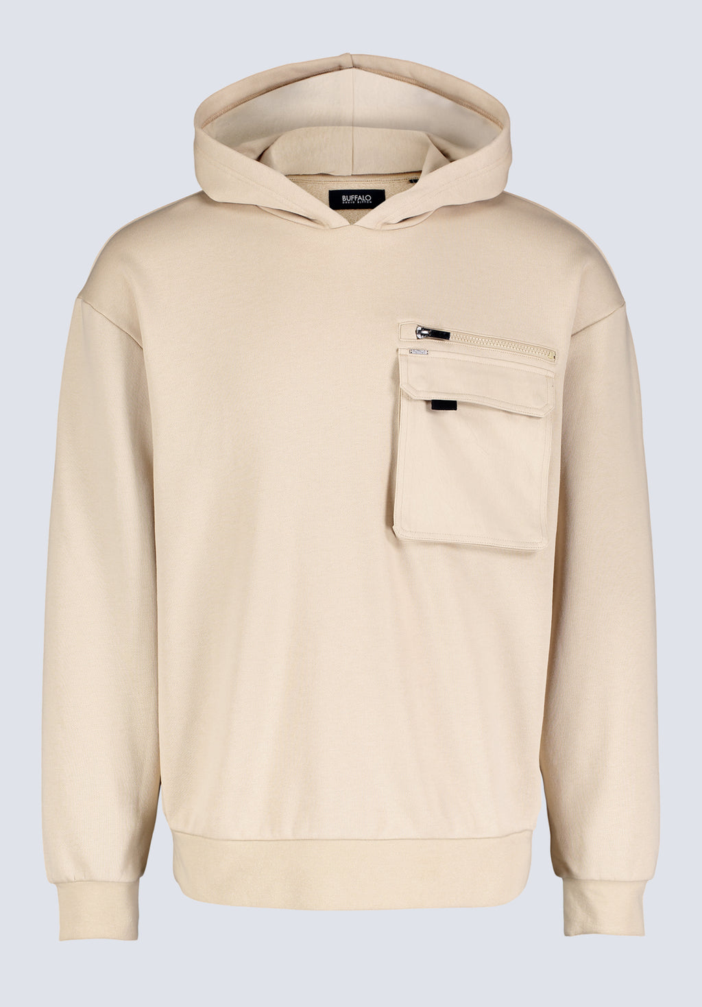 Fabio Men's Hooded Sweatshirt with Chest Pocket, Cream - BM24393