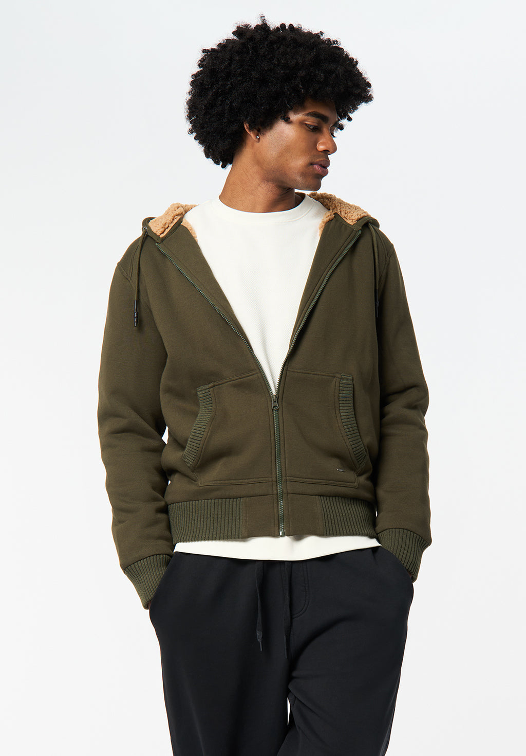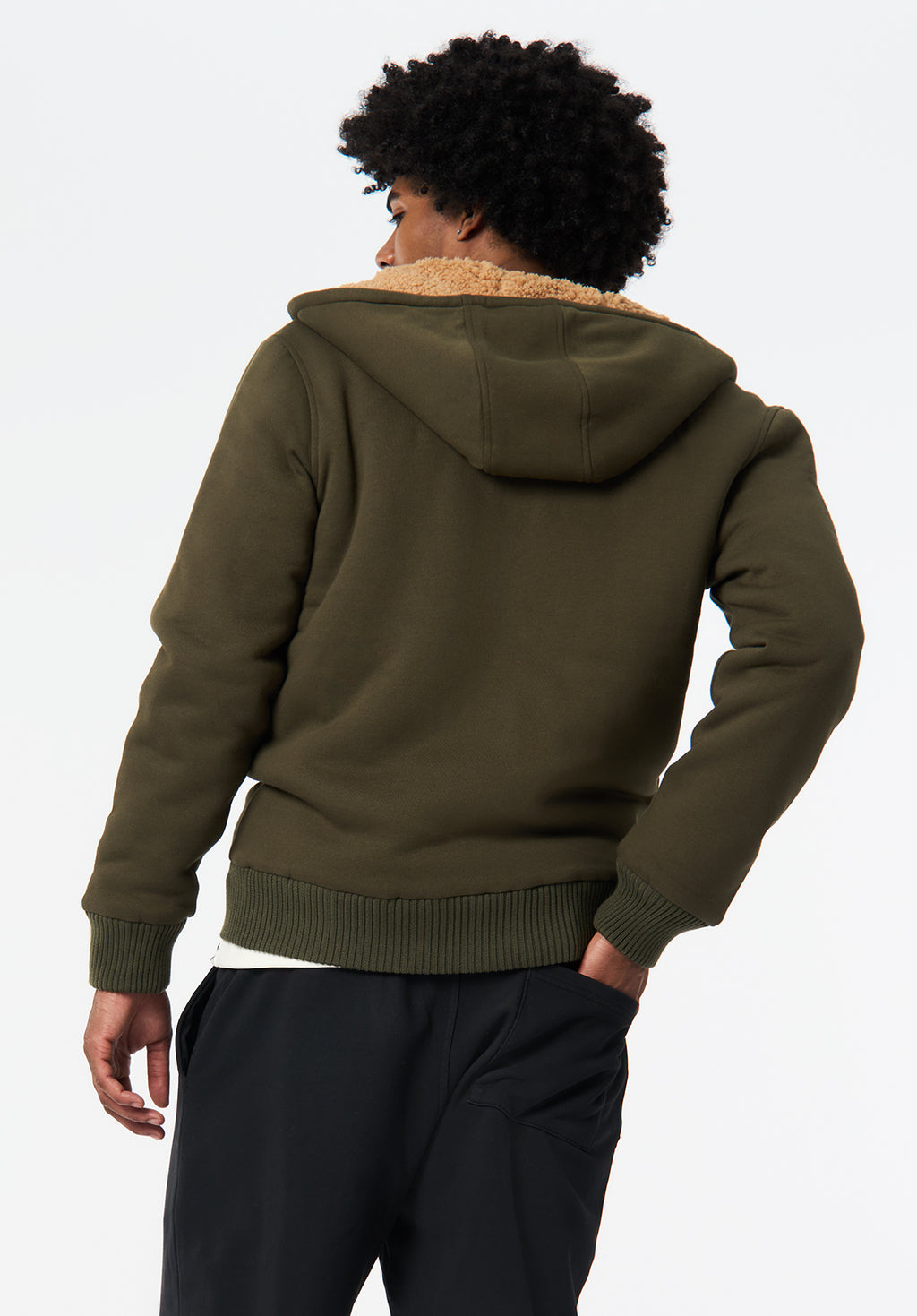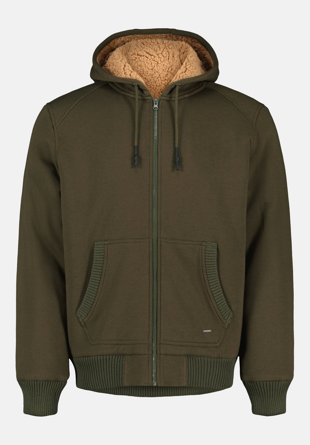 Fasox Men's Relaxed Full-Zip Hooded Jacket with Sherpa Lining, Fern - BM24735