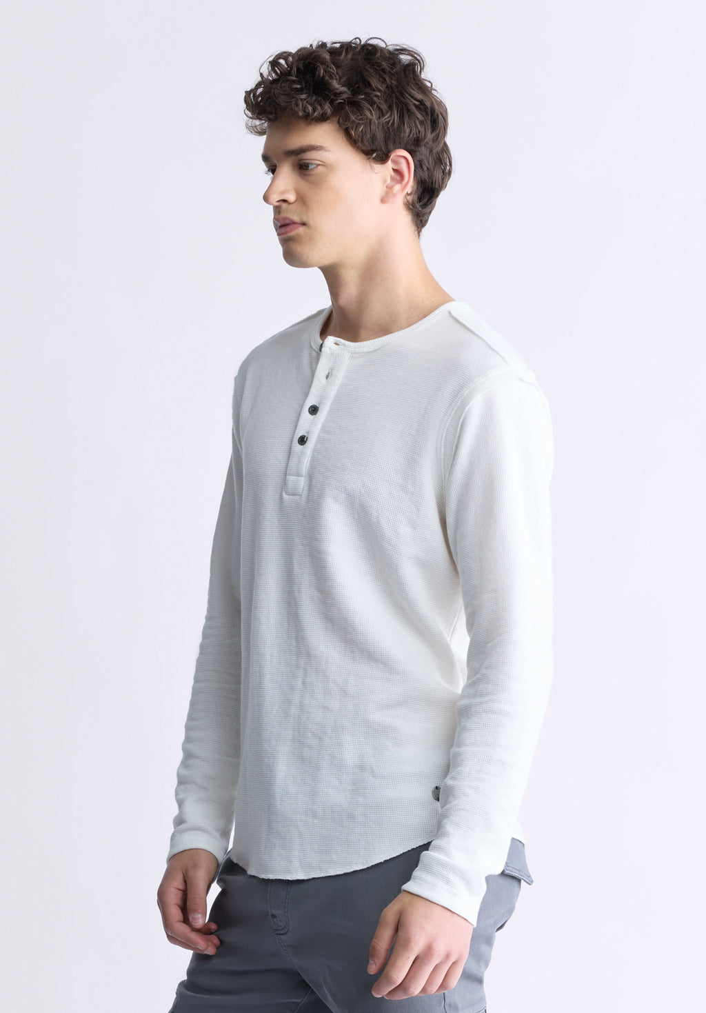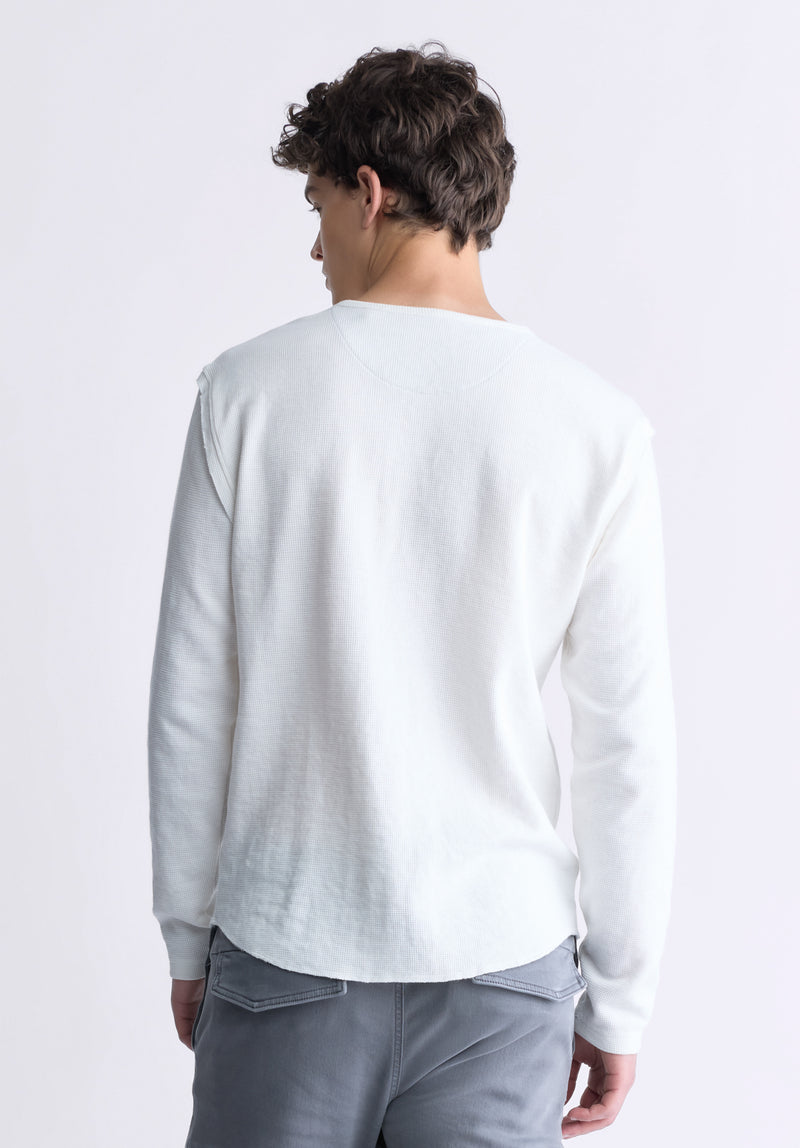 Kipato Men's Long-Sleeve Henley Top, White - BM24434