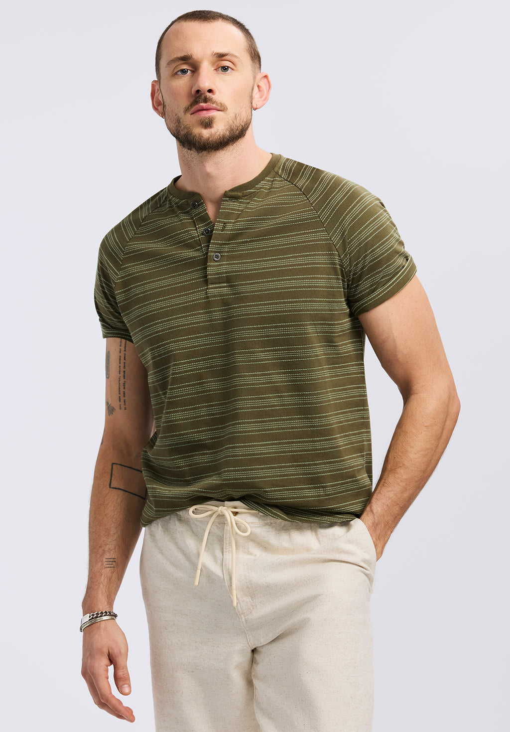 Klaus Men's Short-Sleeve Striped Henley Top, Fern - BM24630