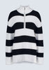 The Storme wide-stripe sweater features long sleeves with wide ribbed cuffs, a quarter-zip stand-up neckline and a side slit. Its dropped shoulders and long length will quickly make it a favorite.