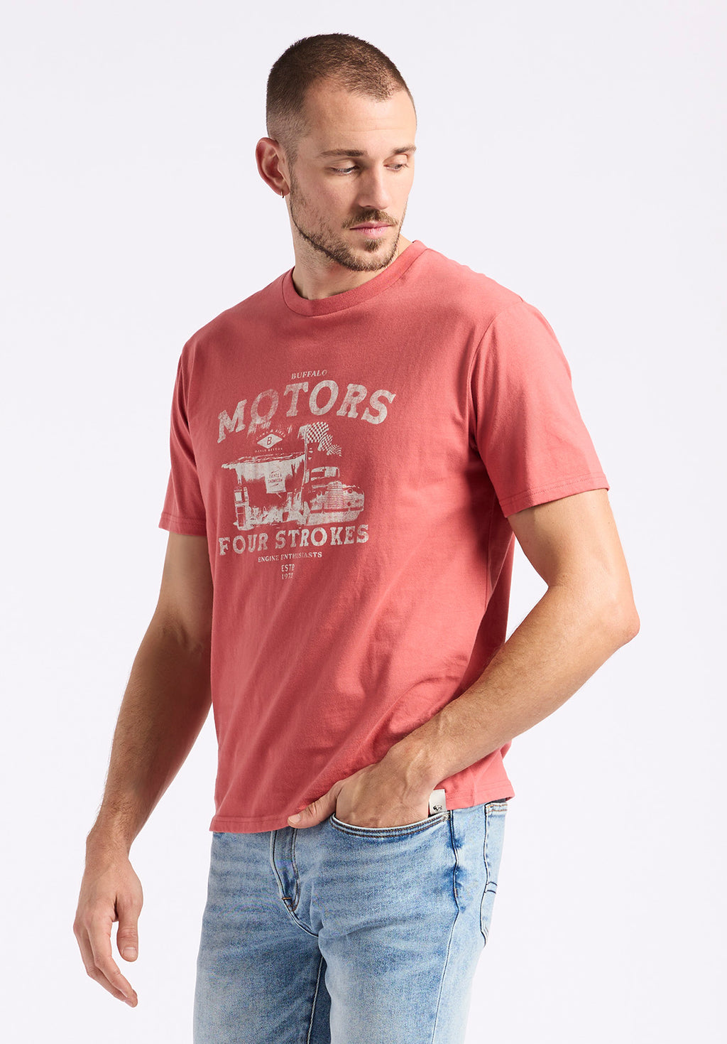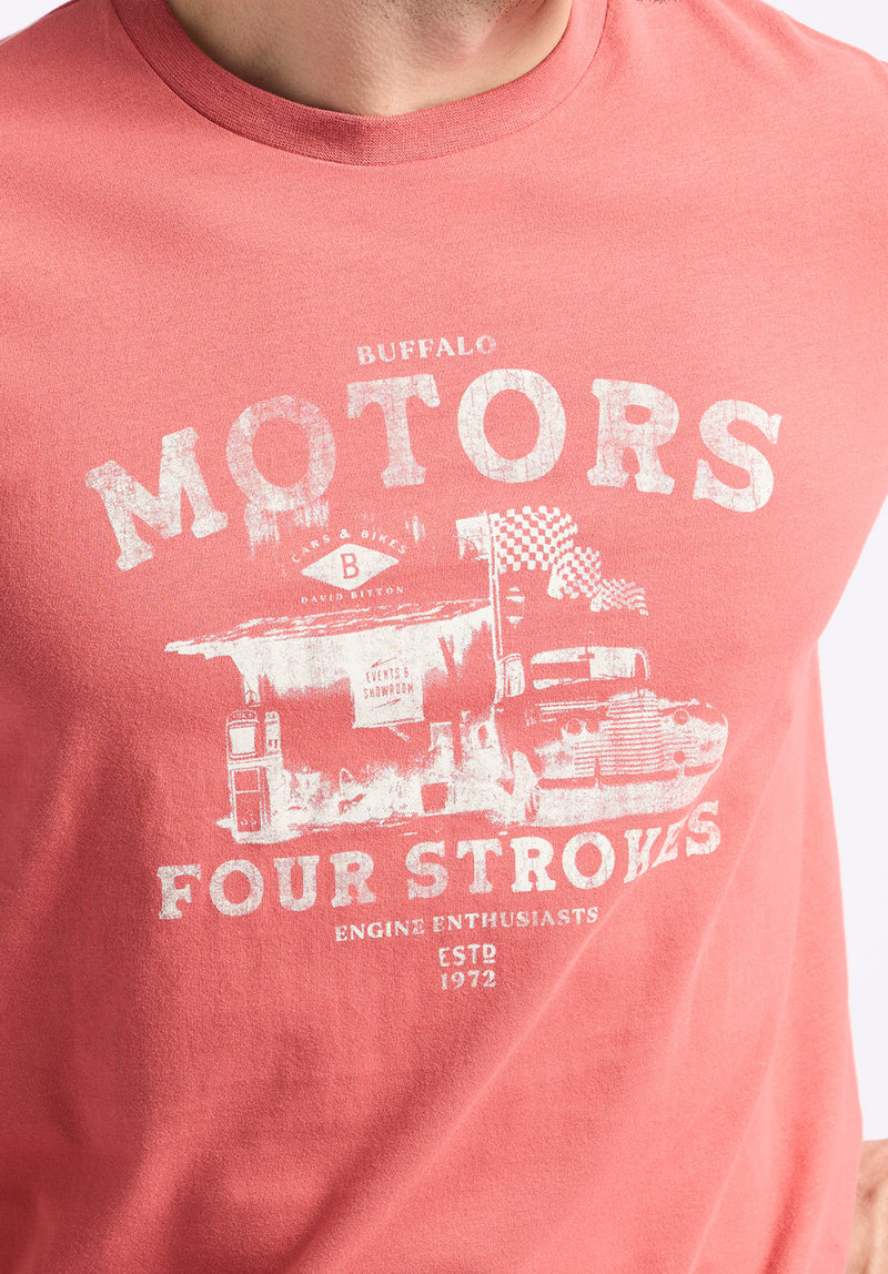 Trokes Men's Graphic T-Shirt with Motors Print, Mineral Red - BM24638