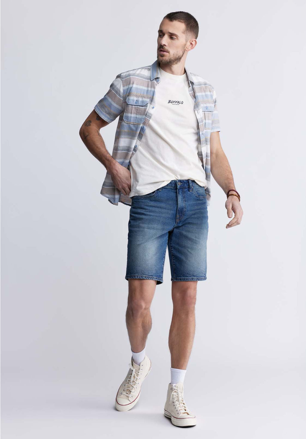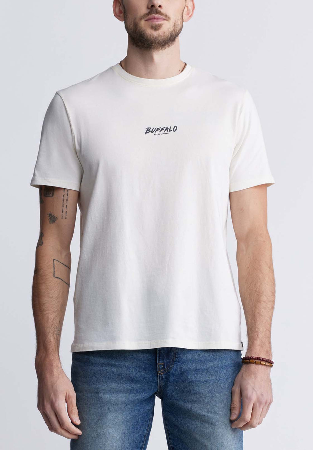 This crisp white t-shirt has a small "BUFFALO" inscription at the front and a stunning graphic at the back. This is a style that will not go unnoticed.