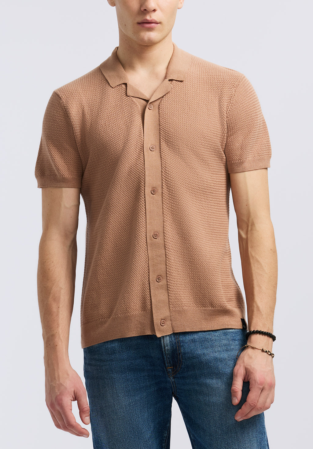 The Wasko men's button-up sweater polo combines classic craftsmanship with contemporary design. Designed with a regular fit, it provides ease of movement and a flattering shape for all-day comfort. The short sleeves and soft knit fabric ensure breathability, making it an ideal choice for casual outings or dressed-up occasions. Effortlessly versatile, it pairs well with both jeans and chinos for a timeless style. Representing timeless classics with a touch of versatility, the Regular Fit strikes the perfect balance between comfort and style, offering relaxed silhouettes that exude effortless charm. With relaxed shoulders and slightly more generous midsections, this fit delivers pieces designed to accompany every moment of the day with ease and refinement.