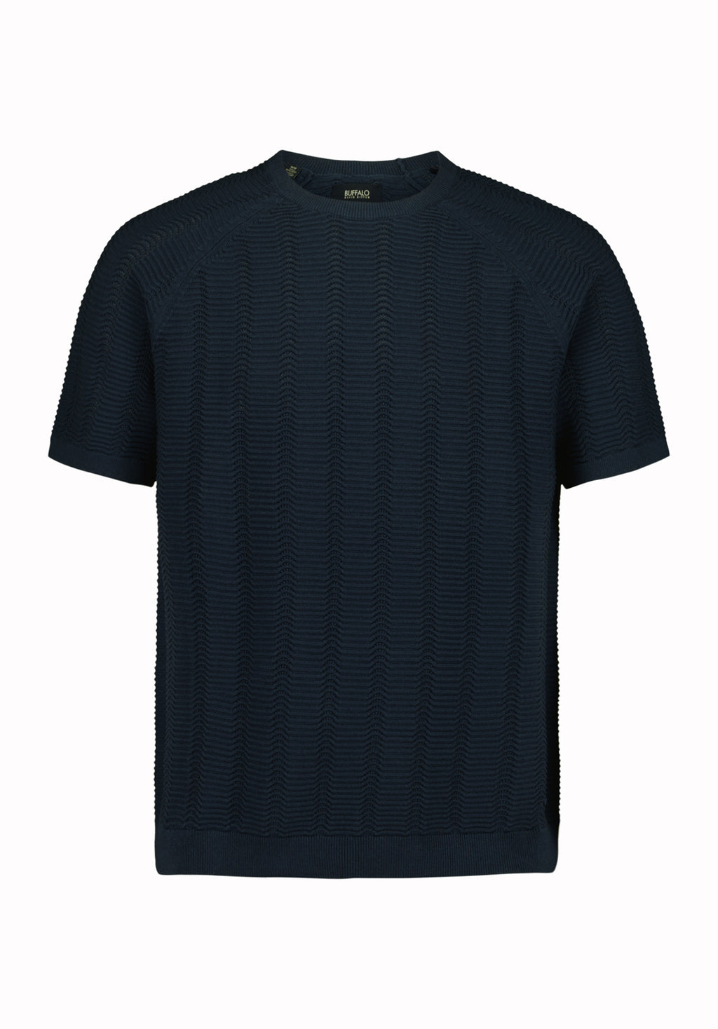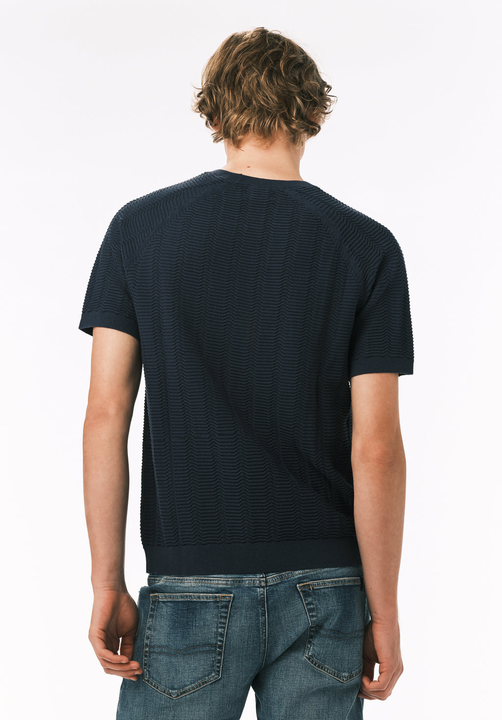 The Wipped short sleeve sweater tee is made from a soft knit fabric featuring an allover textured wave stitch. Designed with a classic crew neckline, ribbed trims, and short sleeves, it offers natural stretch and a comfortable, breathable feel. Finished with a clean silhouette, this style works easily on its own or layered for everyday wear.